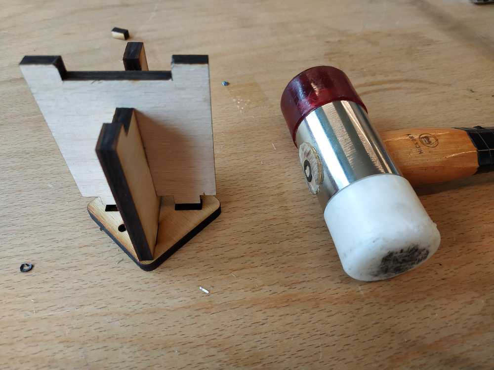 The wooden part are designed as a press fit kit. It’s a snug fit, I used a hammer to make it fit properly.