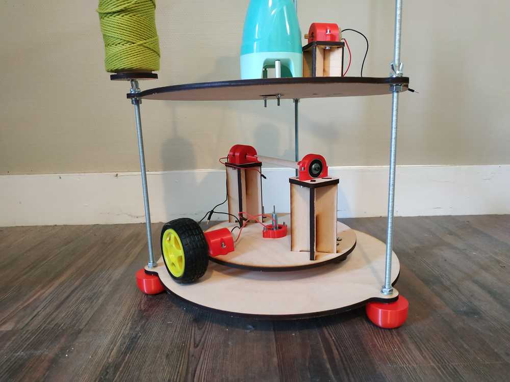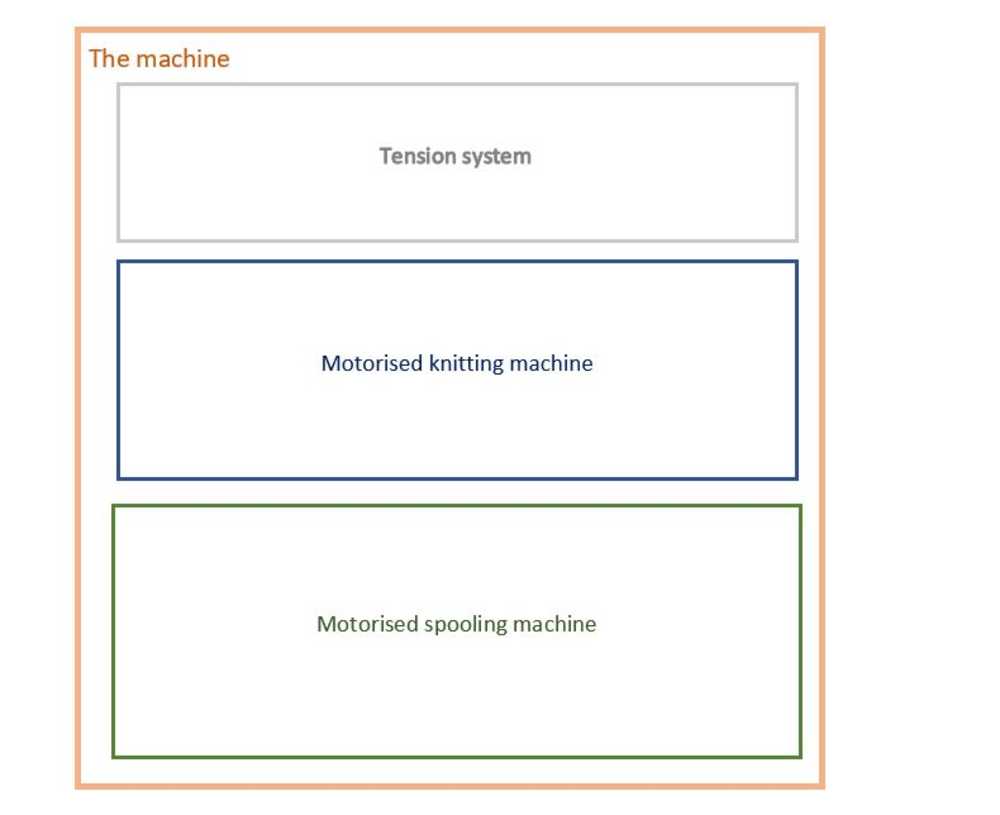 NOTE : For this machine the second level is an existing machine modified for our need but it could be a model made in a fablab. The fact that the levels are independent means it’s easy to change the knitting system for another one (with more needles for example).