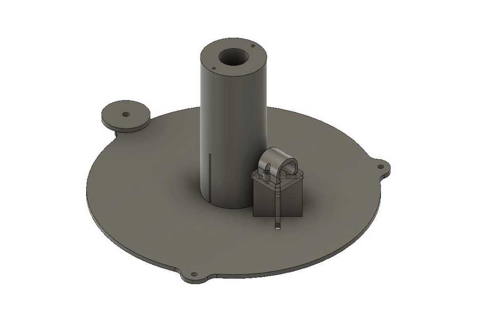 The level 01 is a very simple design. It’s a platform to hold the spooling system. It has a hole in the middle to connect to the bearing of the platform and it has three holes to hold the rods to connect the different levels on the sides.