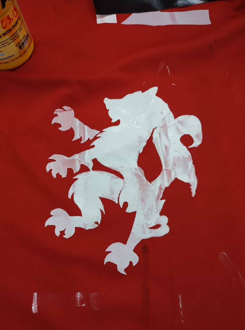In the photo below you will see a very bad printed T shirt, I put paint with a thick layer and failed. Before starting this week's assignement I decided to test the paint and all tools. I found an old vinyl of the lion logo (which I have cut some weeks ago) and started the printing. Looking at this picture you will see thick layer of paint and some spaces between lion's body parts and blurry paint․ It is result of wrong processes. The mistakes were bad design, wrong cut vinyl, thick layer of paint. That is why I draw a new lion logo, I have described it above.