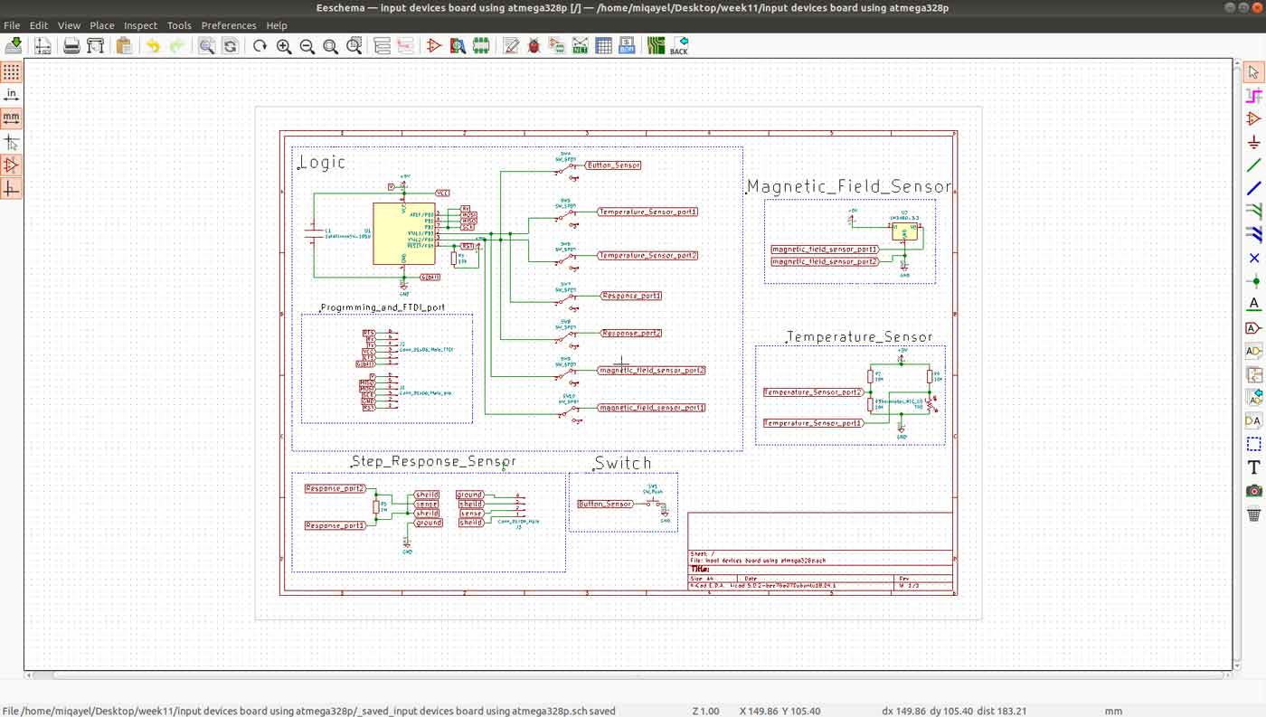 For this week I gonna use KiCad for schematics and layout design, for PCB manufacturing I am gonna use Rolland SRM-20 milling machine, also I gonna use switch, temperature sensor, magnetic field sensor, the step response sensor. I will use attiny45 as a microcontroller.