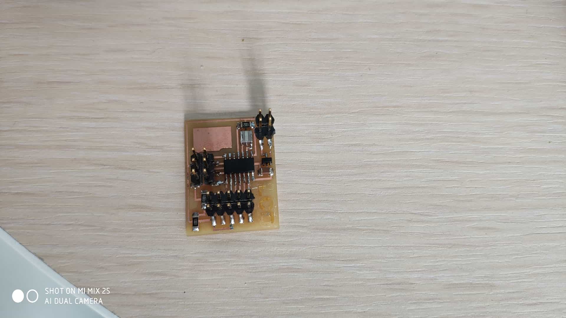 For Information on how to solder the boards go to week 5 “Electronics Production”(the main difference is that I used 3 jumpers to connect all grounds area). Also, make sure that there is no short circuit on the board by using a multimeter.