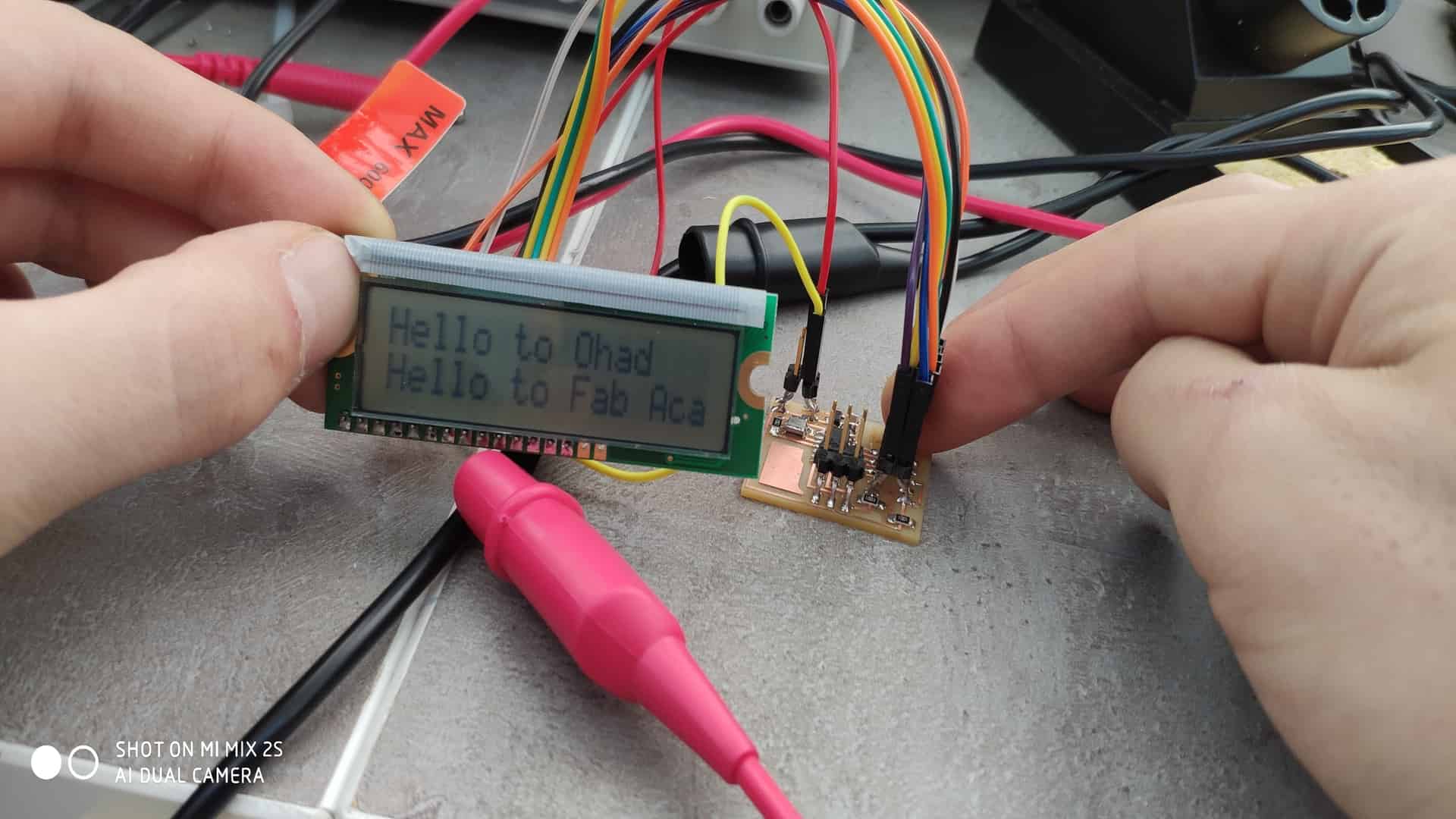 I mill the board using Rolland SRM-20, I generate g code using fab modules.After solder and connecting board pins to LCD I start programming part.