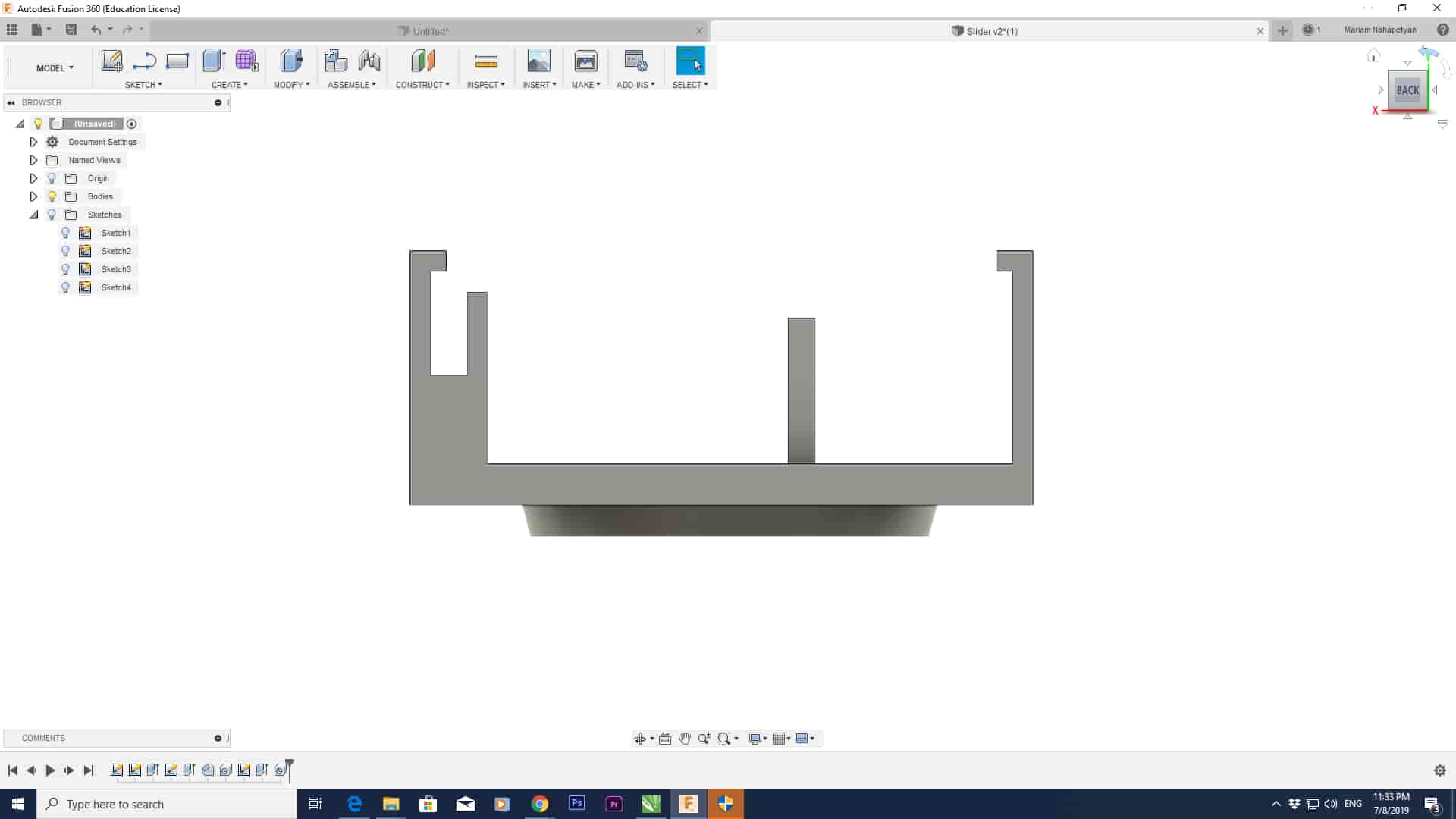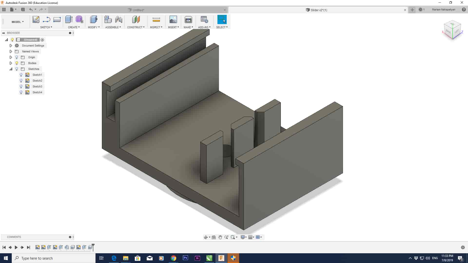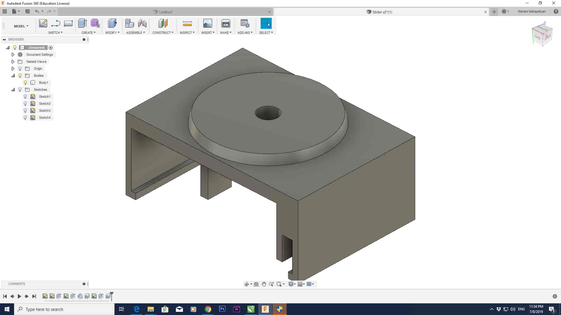 As a 3D model, Mariam needs to design a holder for a camera that fits on the rail. The modeling of this part is very challenging because it has a complex structure. But by using Fusion 360 is very easy to drow and get the right design. Fusion 360 is an integrated CAD, CAM, and CAE software. It simplifies your entire workflow with one unified platform. Also, Fusion 360 has