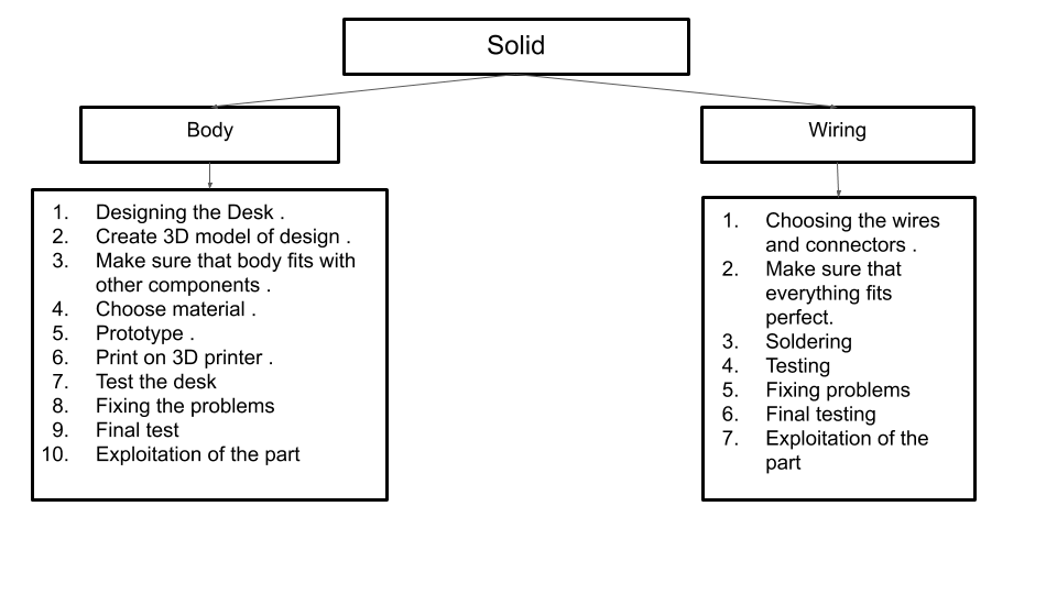 Next part of my projects is Solid part it consists of two main parts Body and Wiring. The body is 3D printed boxes for Master and Slave board, and desk frame(plywood and MDF material). And 3D printed boxes must snap together like a snap kit, and it will be the surface of the desk. For accomplishing this part I need to follow these steps