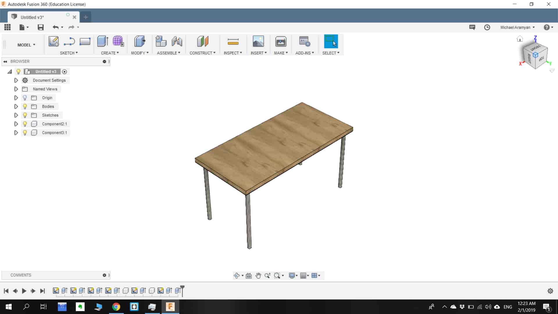 Here I tried to represent 3D model of the desk on Fusion 360 .