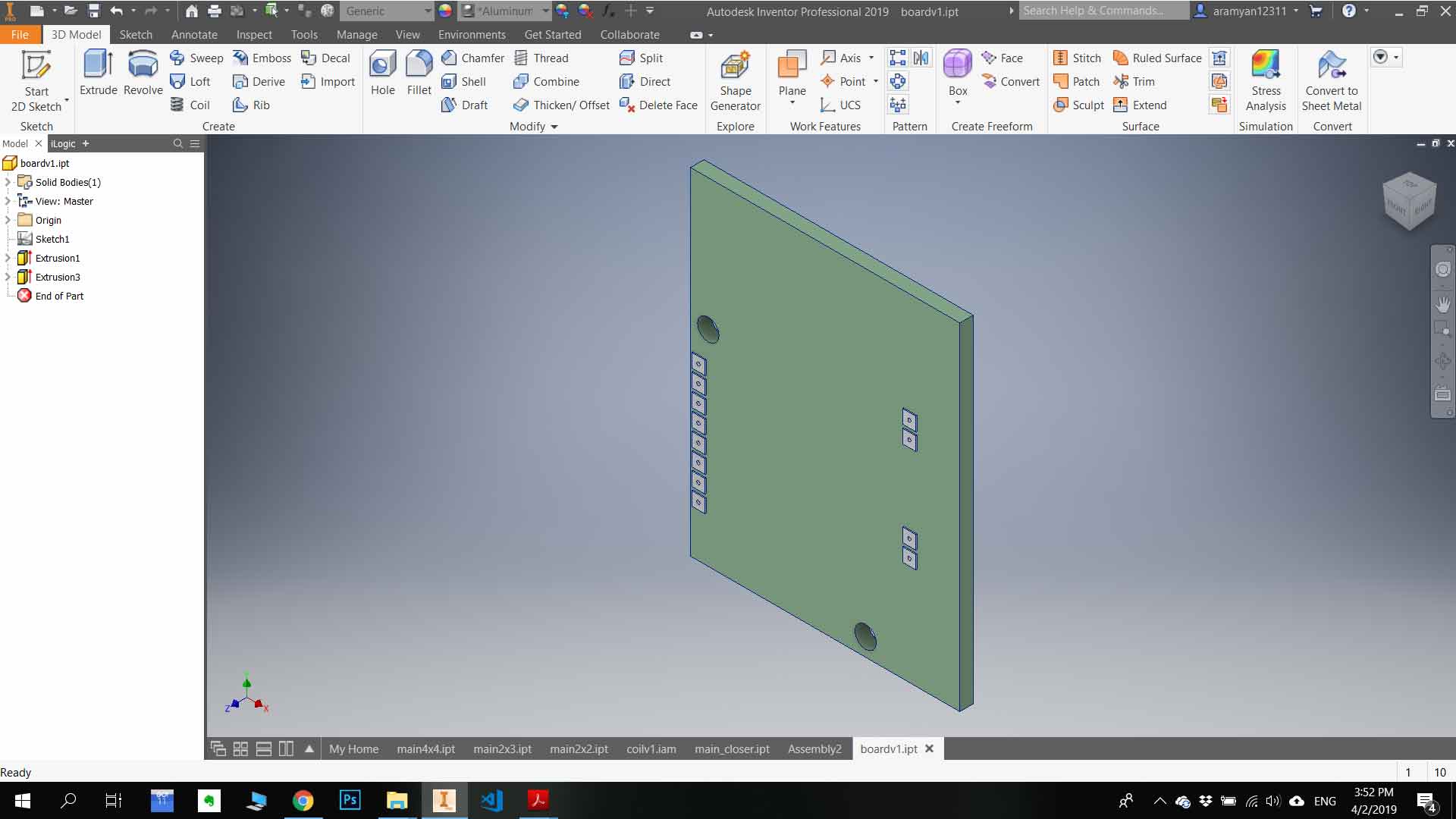 First of all, understand the size of my wireless charging desk, and which parts it is consist off. Create the parts as separate 3D models using AutoDesk Inventor Pro - Standart millimeter .ipt.