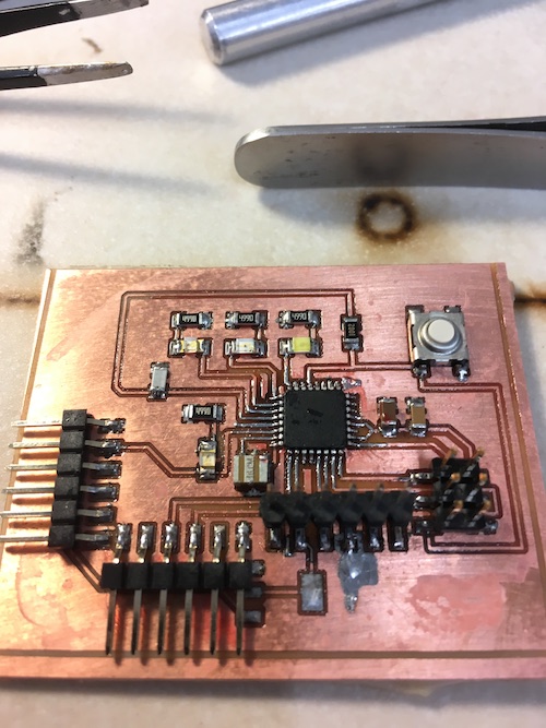 I adopt some new habits to take to create circut. I undust my circut before doing anything and I really learned to use frequently the multimeter. Before and after every step to confirm the connectivity or the current or voltage who pass thrue. I am more conscious about the current consumption of the component and how to observe, analyse and make good hypothesis to debug a circut. At the beggining, I was thinking that electronic was more mathematic than that. You put a wire between this section and this section and Voilà everything works only maybe the coding part. But at my suprise there is many factors to take in consideration. Every consumption of the component, the heat apply, the way vcc goes and the ground who needs to comeback (always design the vcc and ground like a water canal. Main pipe who go until the end of circut and smaller pipe from their to diminish the noise). Try to isolate the LED from the resonator to don't interfear with that fibration..etc. That was a precious experiences and a big success for me. Files