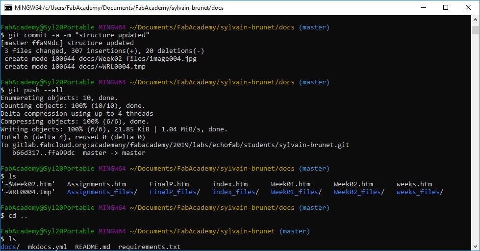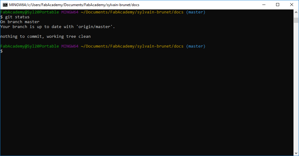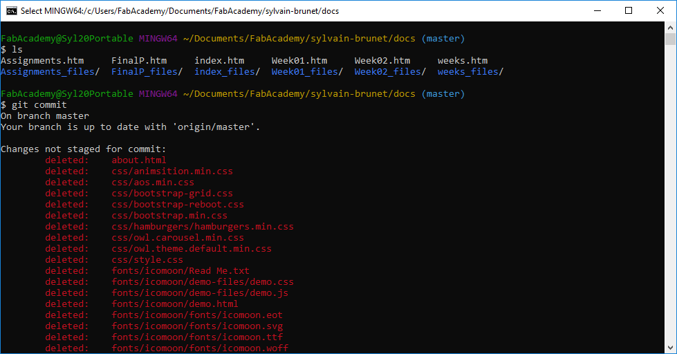 Pretty straight forward, the Git Windows Installer version we're using can be found from the git wiki repository at the following address: https://gitforwindows.org/. Again, no major problems to reported here, only pay attention to username and most of all to email address used: I initially was using a different email address then the one retained by the FabAcademy organization and that caused me logging problems. See later with ssh key generation and use.