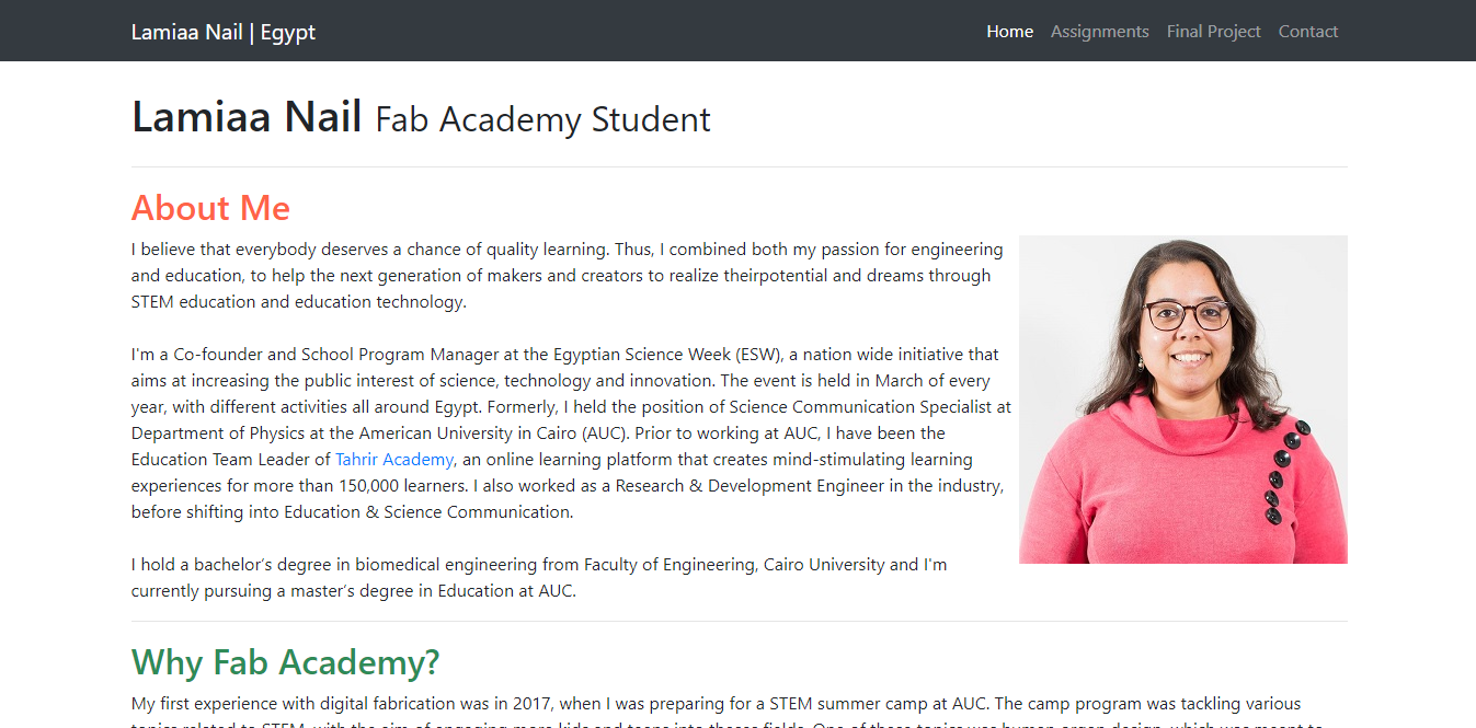 After reviewing Fab Academy students’ websites from last years, I planned the website structure to have 3 main pages: