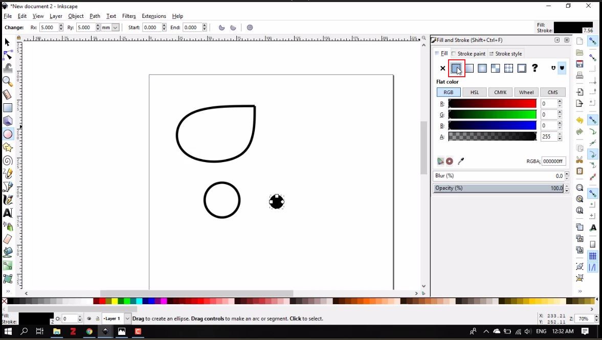 - I will then proceed to draw the eye ball and iris, by clicking on the circle shape from the tool bar on the left.