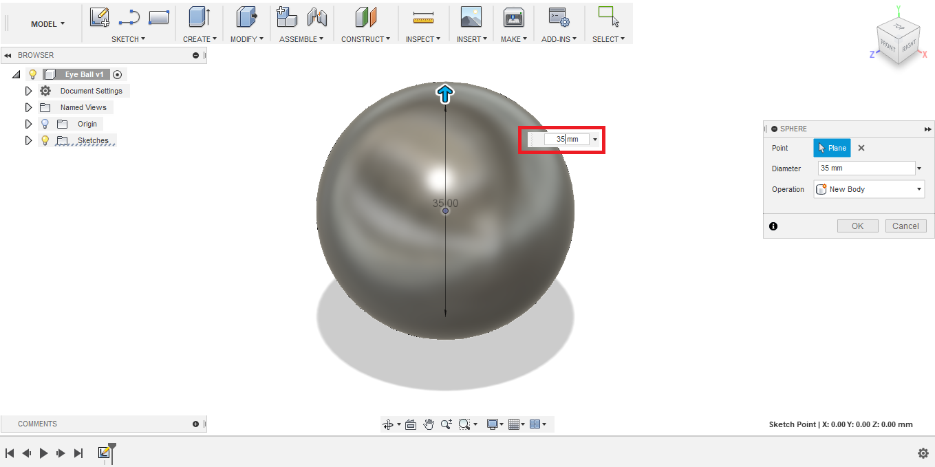 - For this purpose, I created a sphere with diameter 35 mm