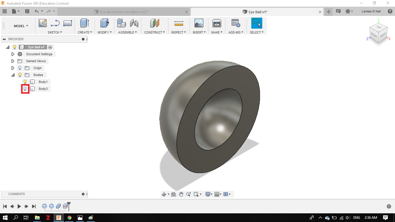 - For the 3D part of this assignment, I decided to create a rough design for the Eyeballs of the robot, using Fusion 360 as well.