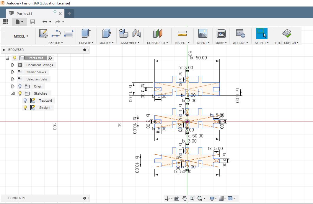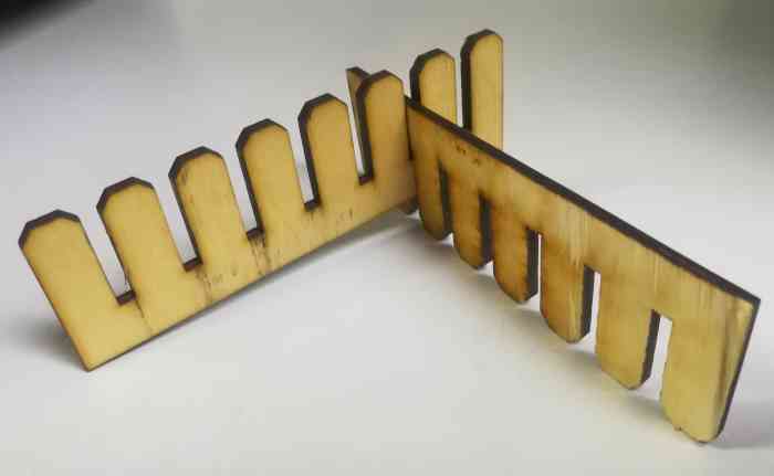 - Finally we cut the combs, and started fitting them together. We found that they press-fit very well at the second slot where the width was originally designed to be 2.9 mm.