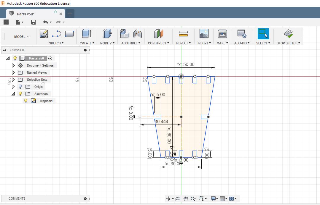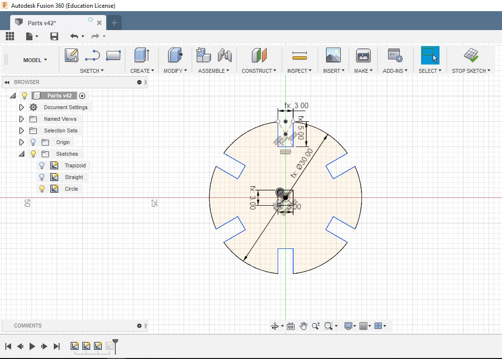 We used the caliber to measure the actual width of the slot after the kerf affect, and we found it around 3 mm. We concluded that the difference between the actual and designed width account for the kerf which is 0.1 mm.