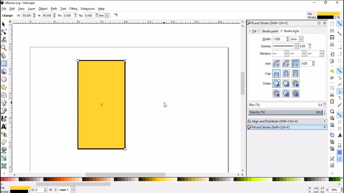 - I started with drawing a rectangle using the rectangle tool in the left vertical bar
