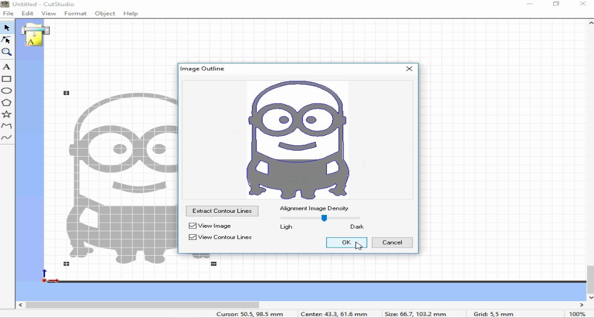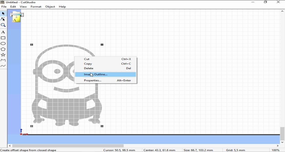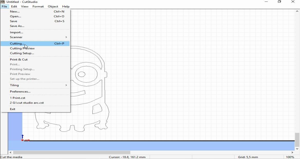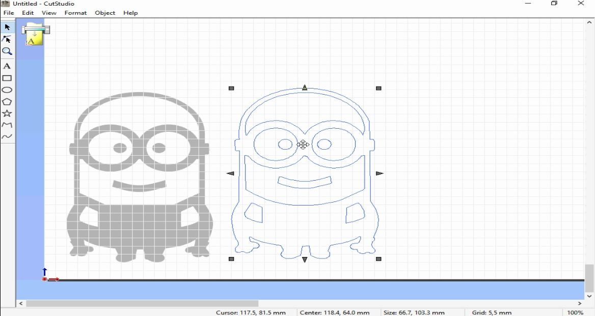 - To tranfer the Minion design to the vinyl cutter, I imported my design into Cut Studio Software