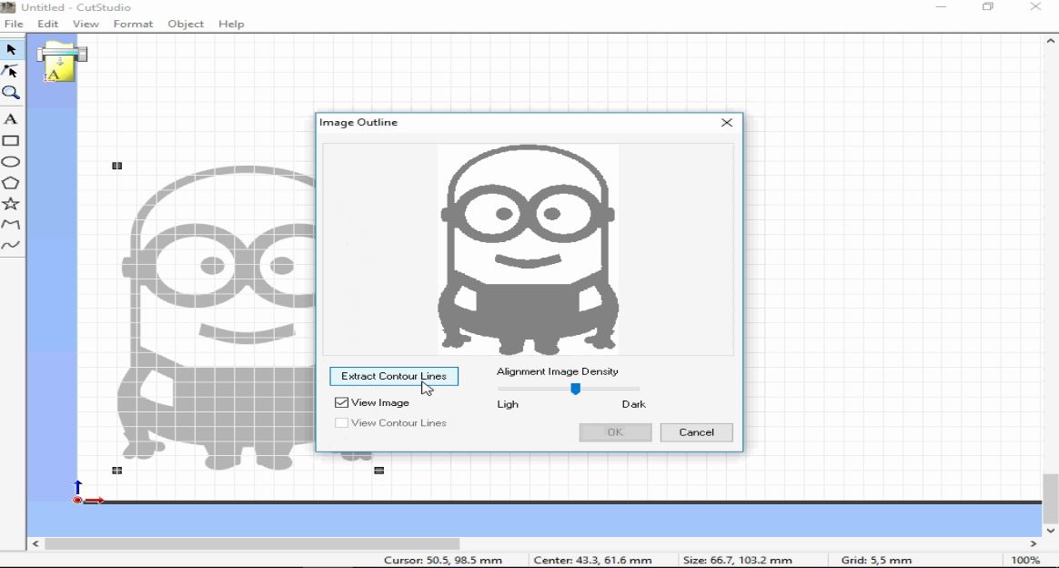 - Left click on the imported design, a window will open, then click extract image outline, then extract contour lines