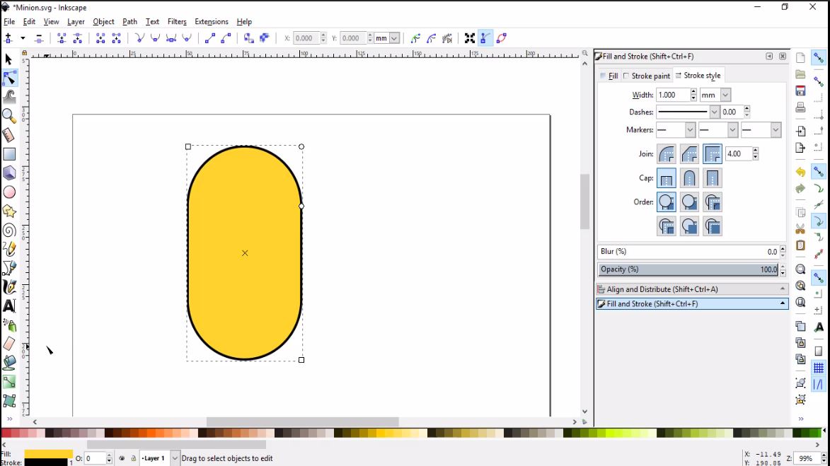 - Then, I used the edit paths by nodes tool to reshape the rectangle into an eliptical shape.