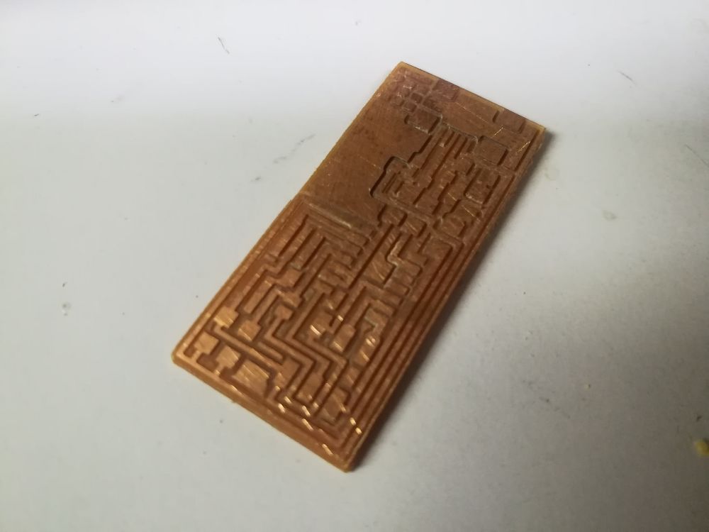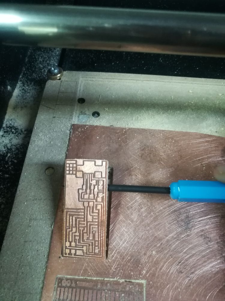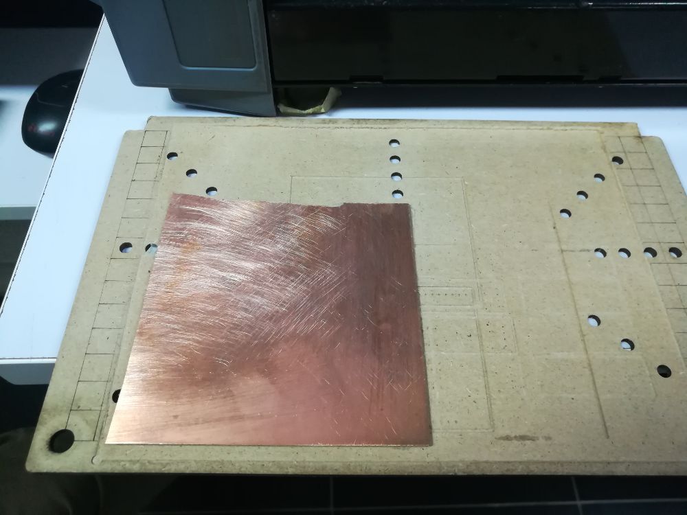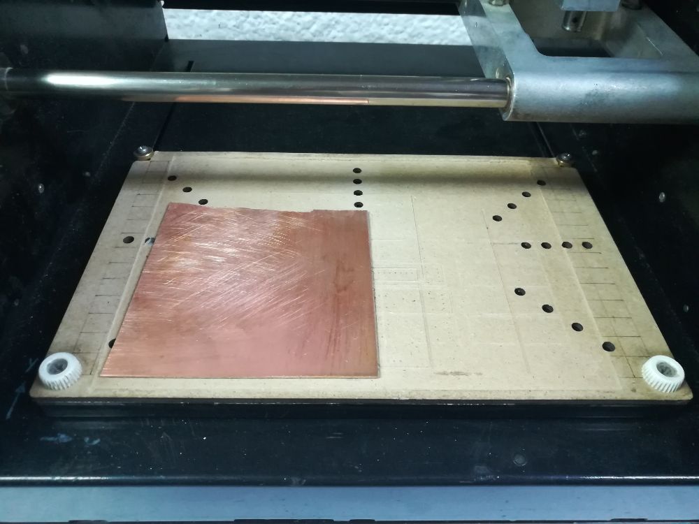 First, we bring the PCB for milling. The PCB we used for this assignment is an FR1 PCB, which is the recommended type to use because it doesn't strain the end mills and doesn't shorten its life time like FR4 PCBs.