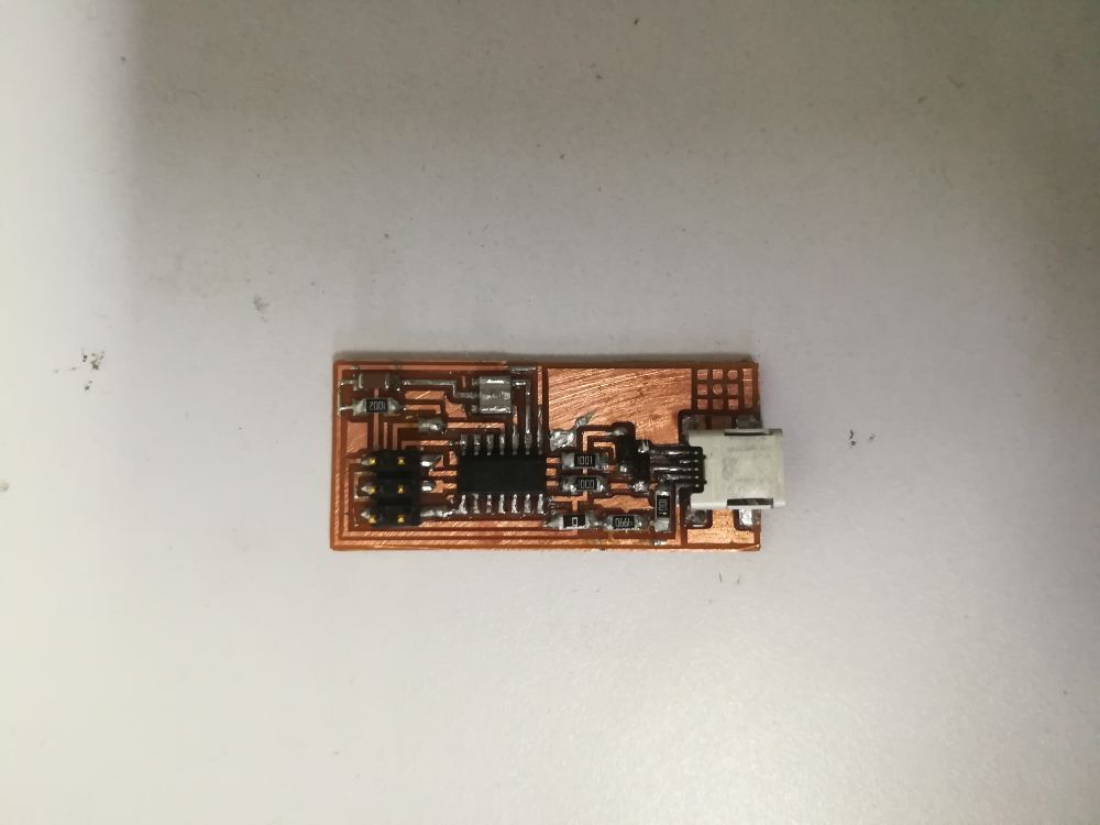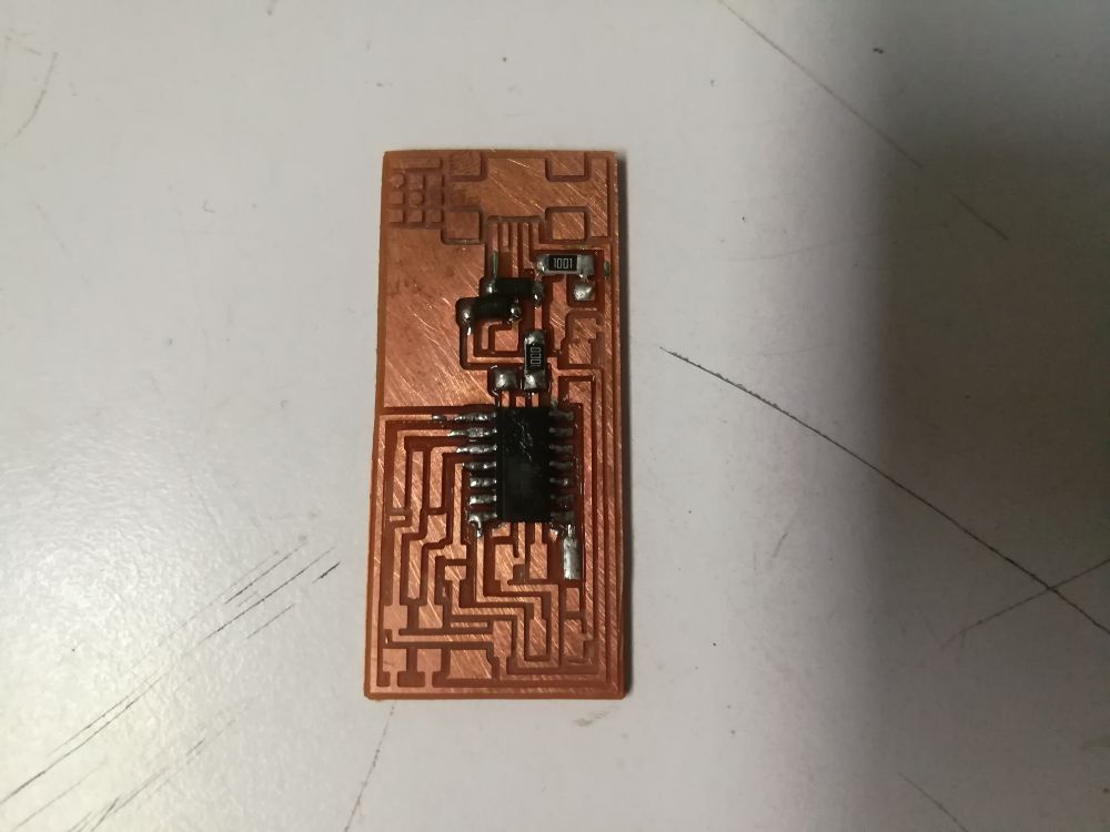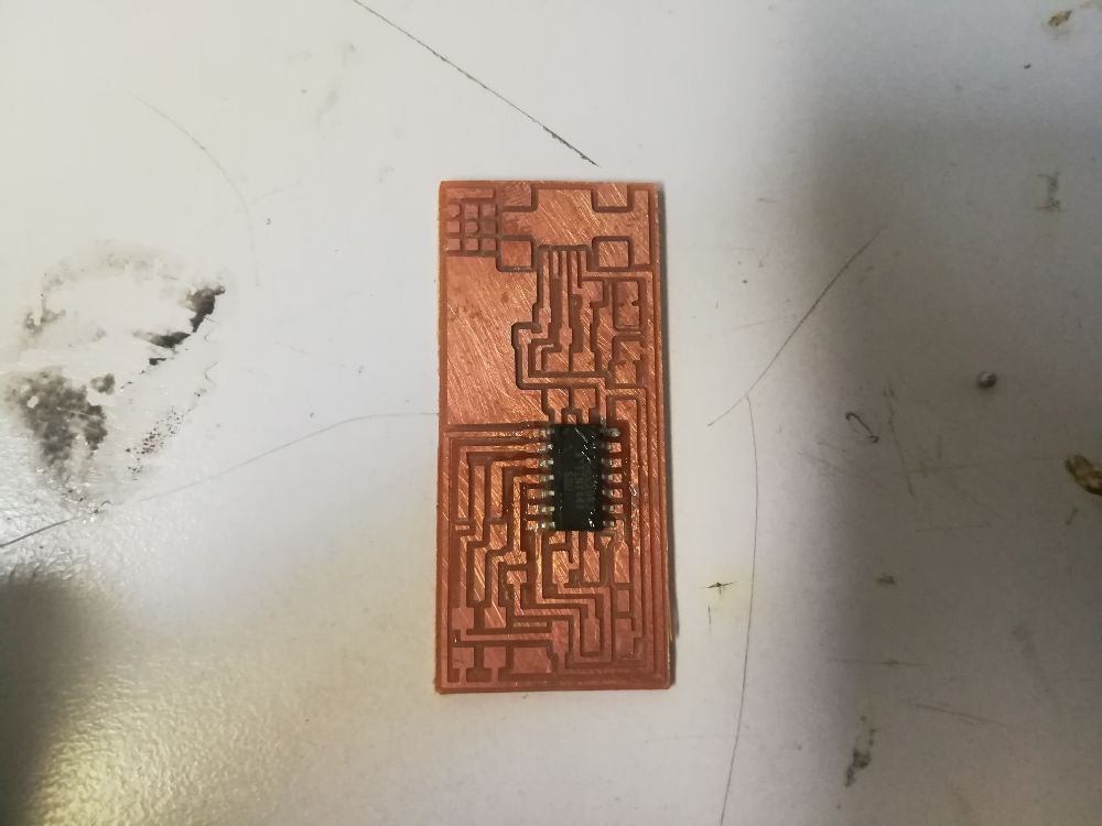 I decided to mill the hello ISB programmer board, with the Attiny 44 microcontroller chip.