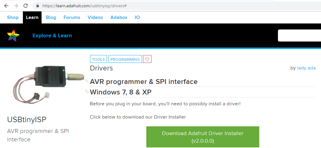 To use this programmer with the Windows operating system on my laptop, I needed to download the required drivers.