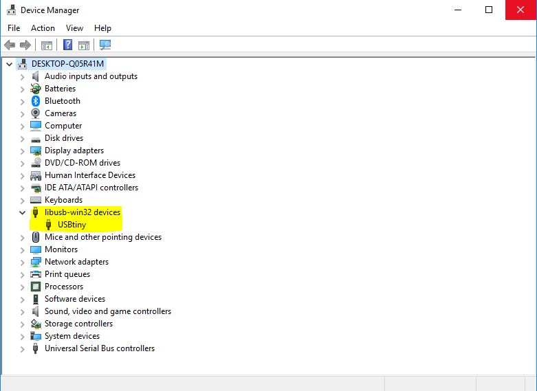 When I open the devices manager, I can find the FabISB listed as "USBtiny".