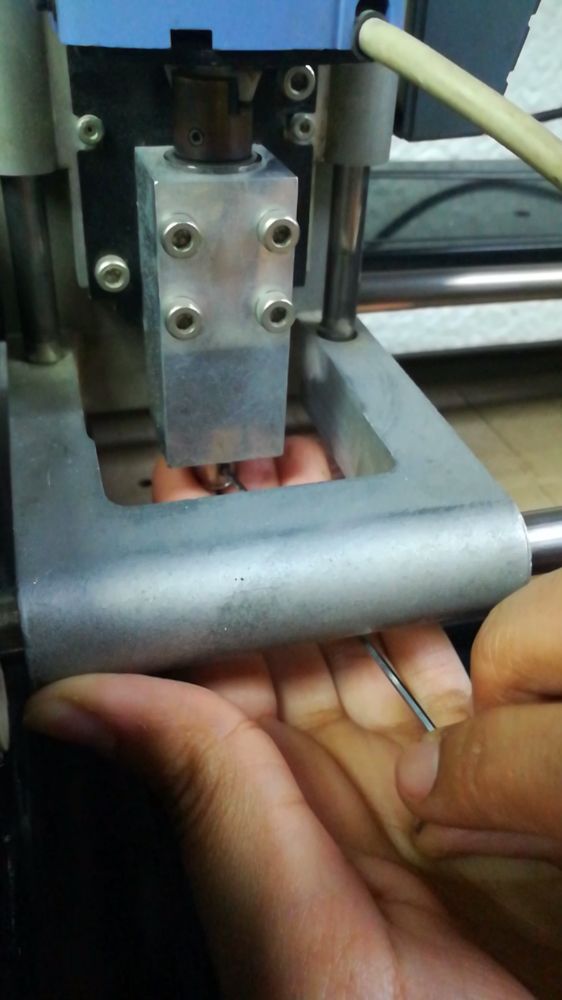 First, we install the 1/64 endmill very carefully, this endmill is very senstive and may break if we didn't install and fix it well in the spindle.