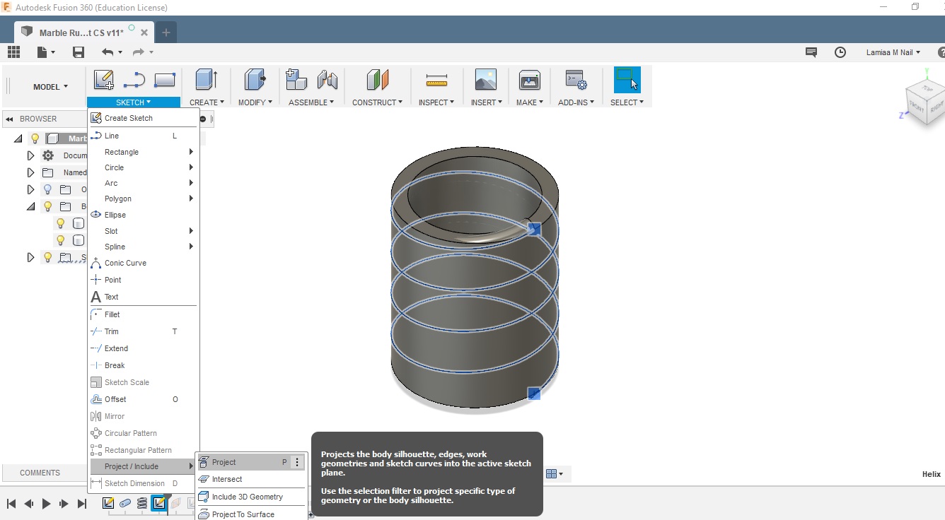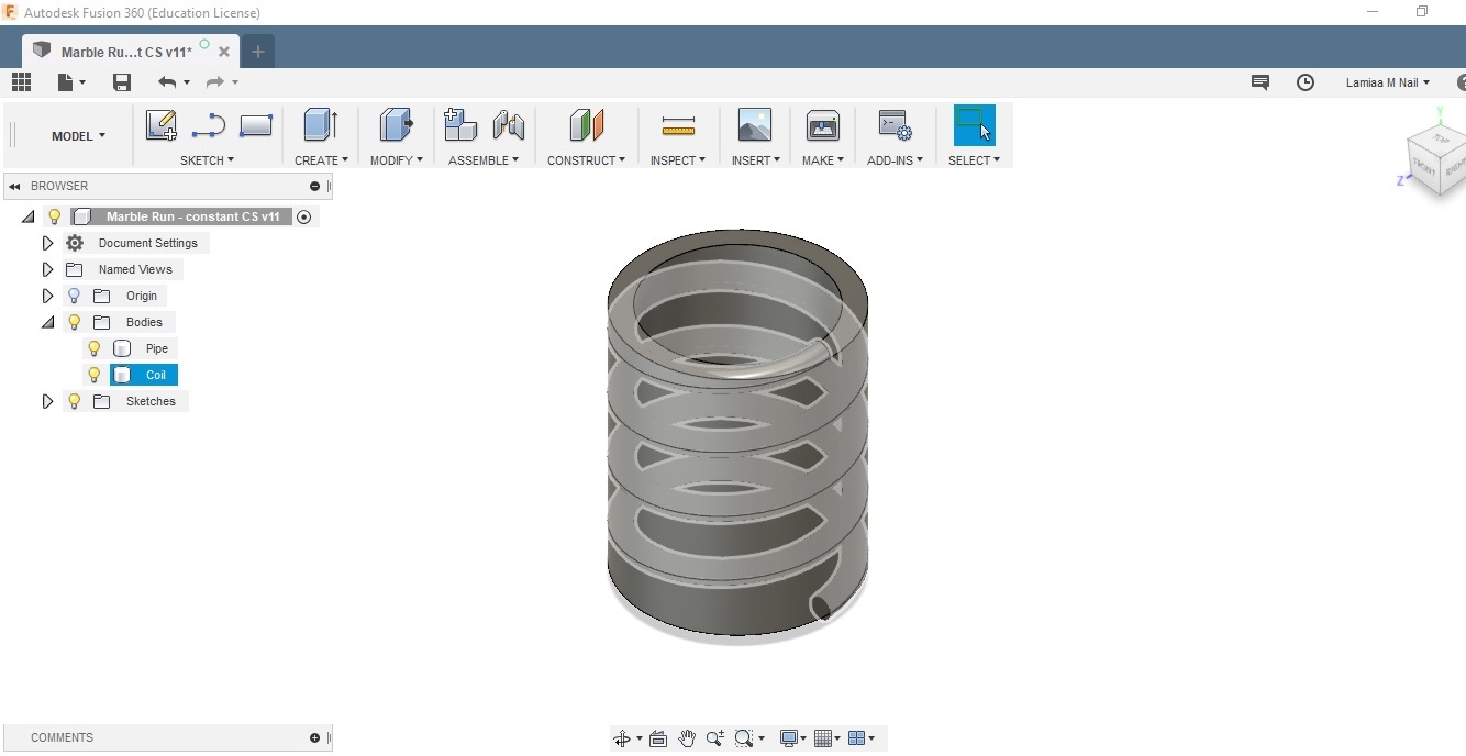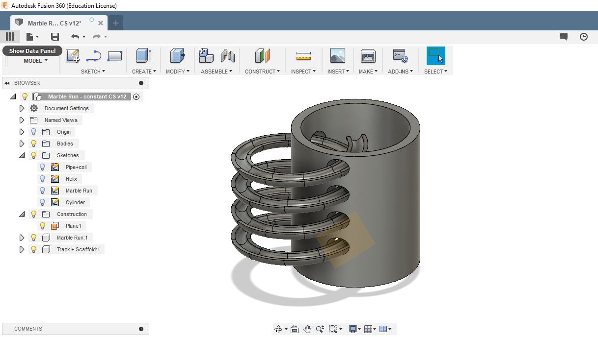 My object of choice is a marble track, the track is helix, embedded within a cylinder which act as a scaffold for the track.