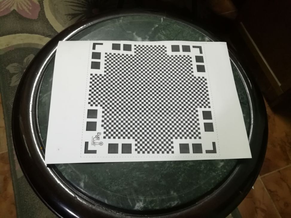 The app requires download a "mate" a pixel-like black and white image to print and put underneath the object.