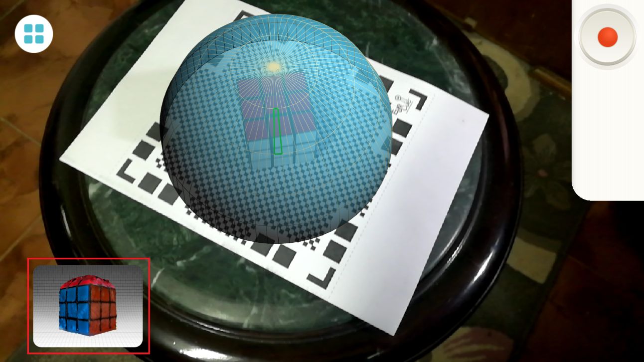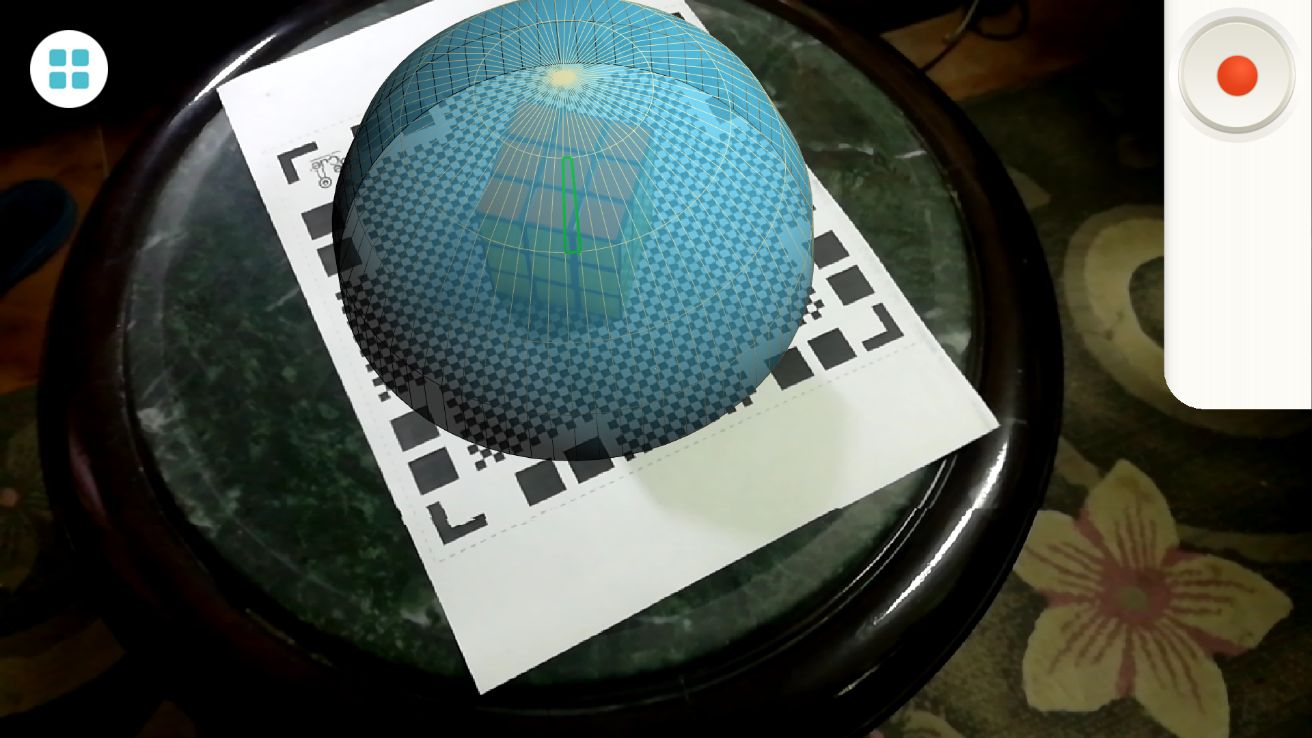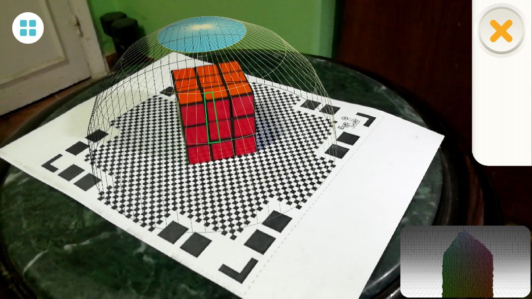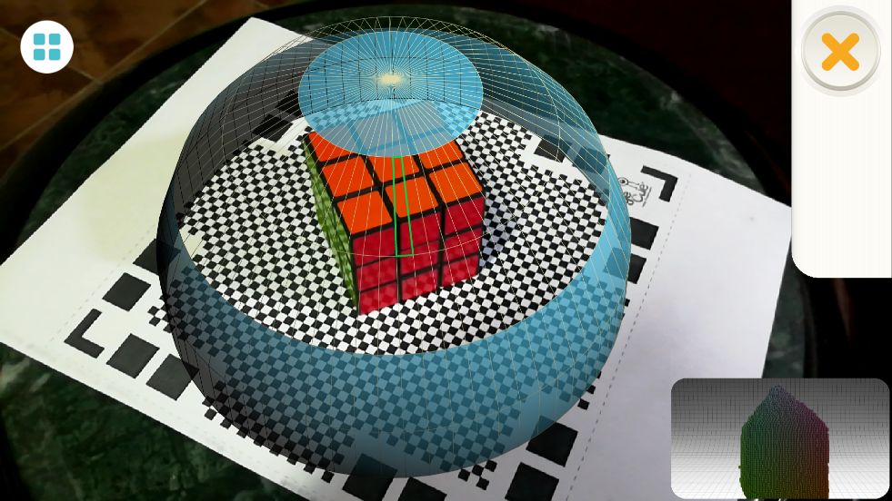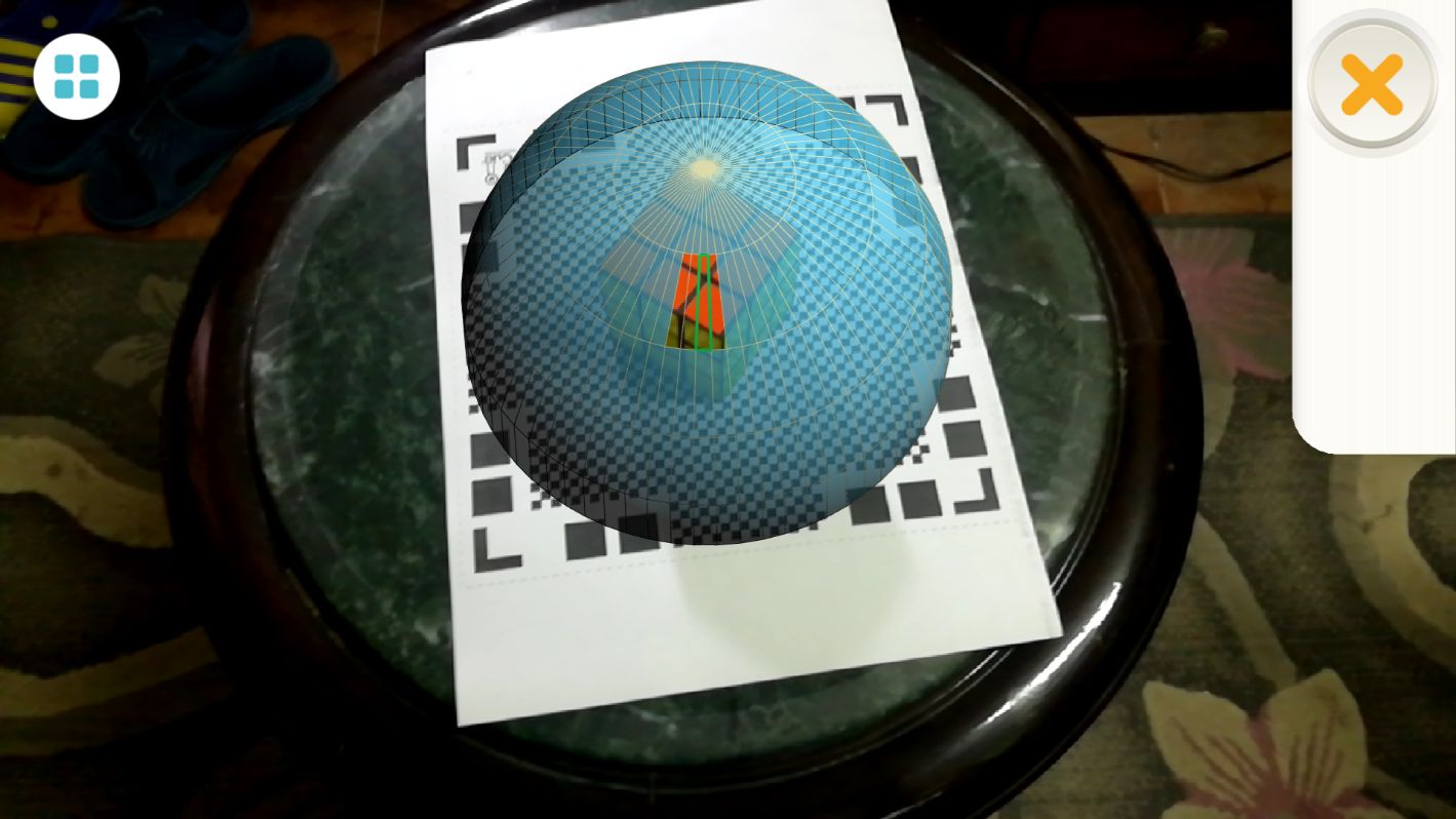 An agumented reality (AR) domw appears over the object, and as I move around it the small tiles of the dome start to disappear one by one.