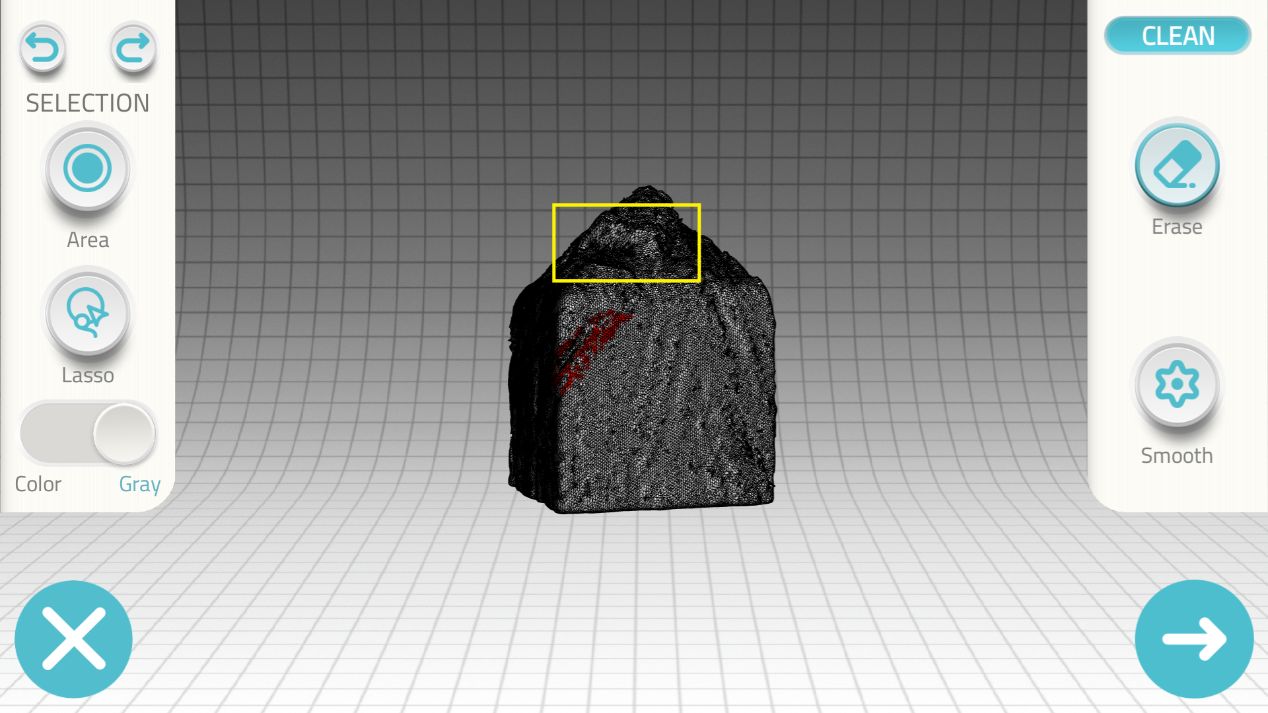 Now that the object has be scanned, the provides me with options to edit it. However, the editing was challenging on a touch screen.