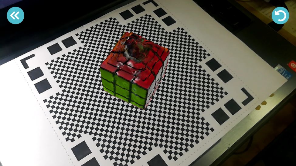 Finally the app gives you the capability to project the scanned object back into reality again using AR technology. Just point the camera back at the mate to see the scanned object in the real world.