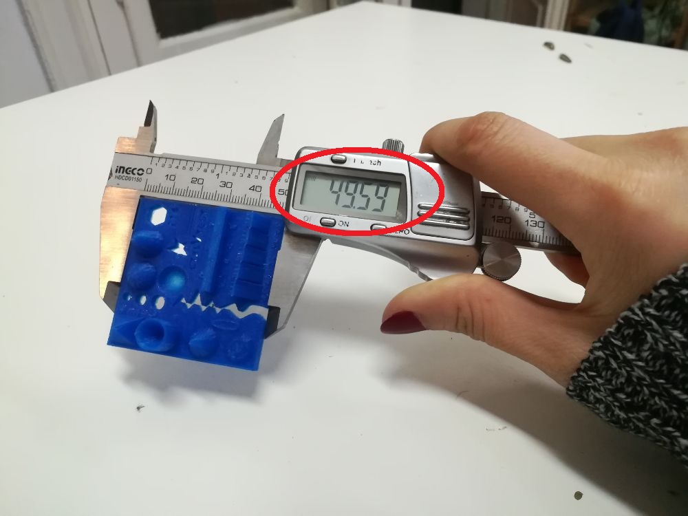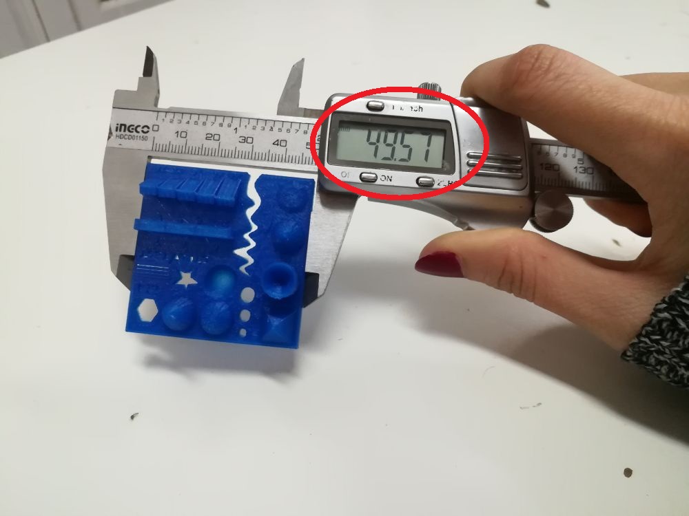 The original design dimensions are: 50x50x4 mm, whereas the printed object dimesnions were: 49.59x49.57x3.83 mm