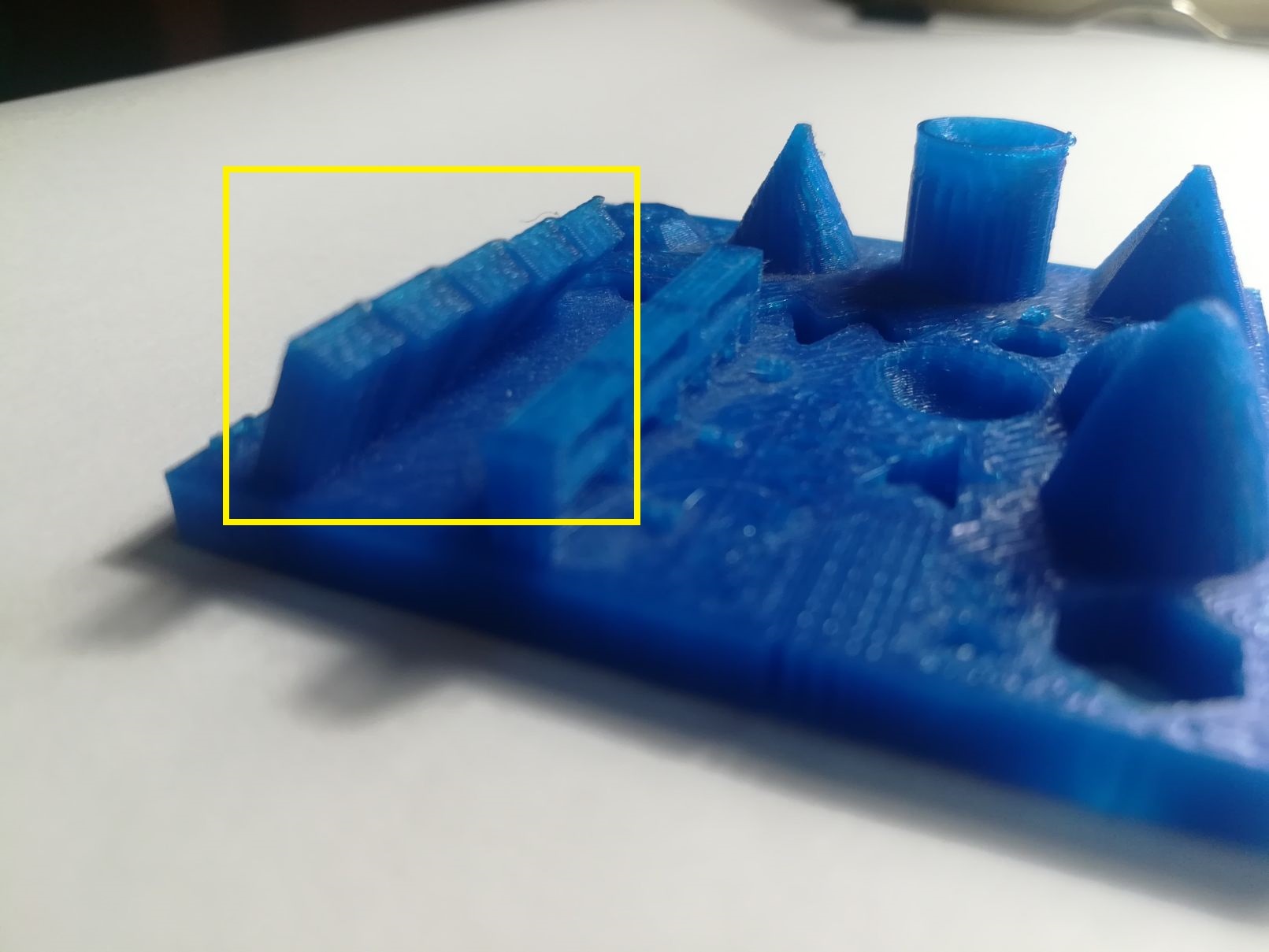 This test part is designed with overhang of 25°/30°/35°/40°/45°. The overhangs at all degrees looks good with no need for supports.