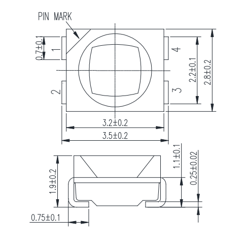 The RGB LED is simply a 3 in 1, Red, blue and green LEDs in one package, by activating more than one LED at once, we can simply output different colors. The RGB LED's (PLCC4) data sheet indicates that the LED has 4 pins, 1 pin for each color and 1 common anode.