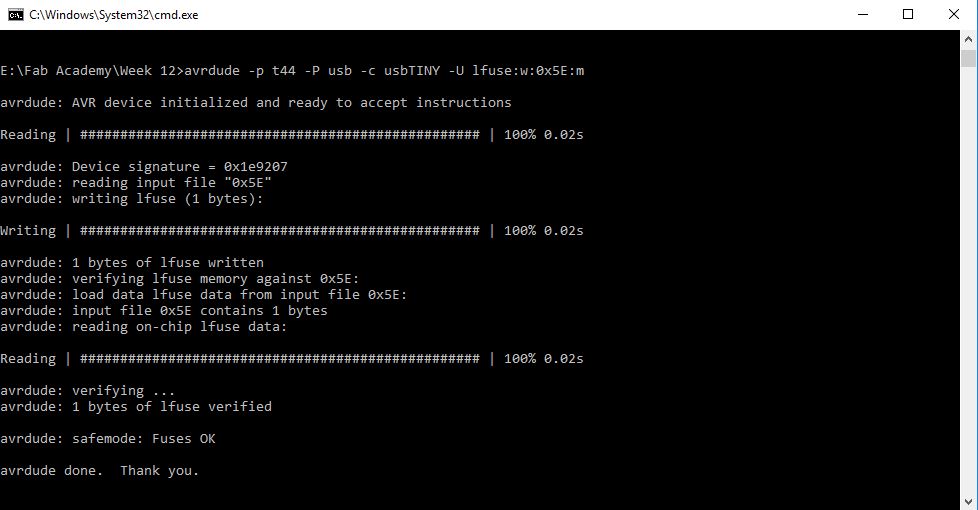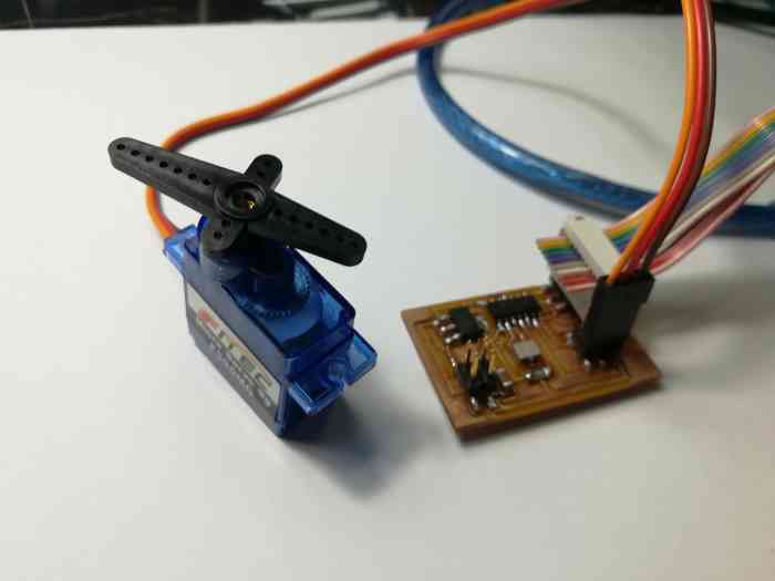 To control the servo motor, I needed first to configure the Attiny 44 to use the external crystal, so I used the make fuse command.