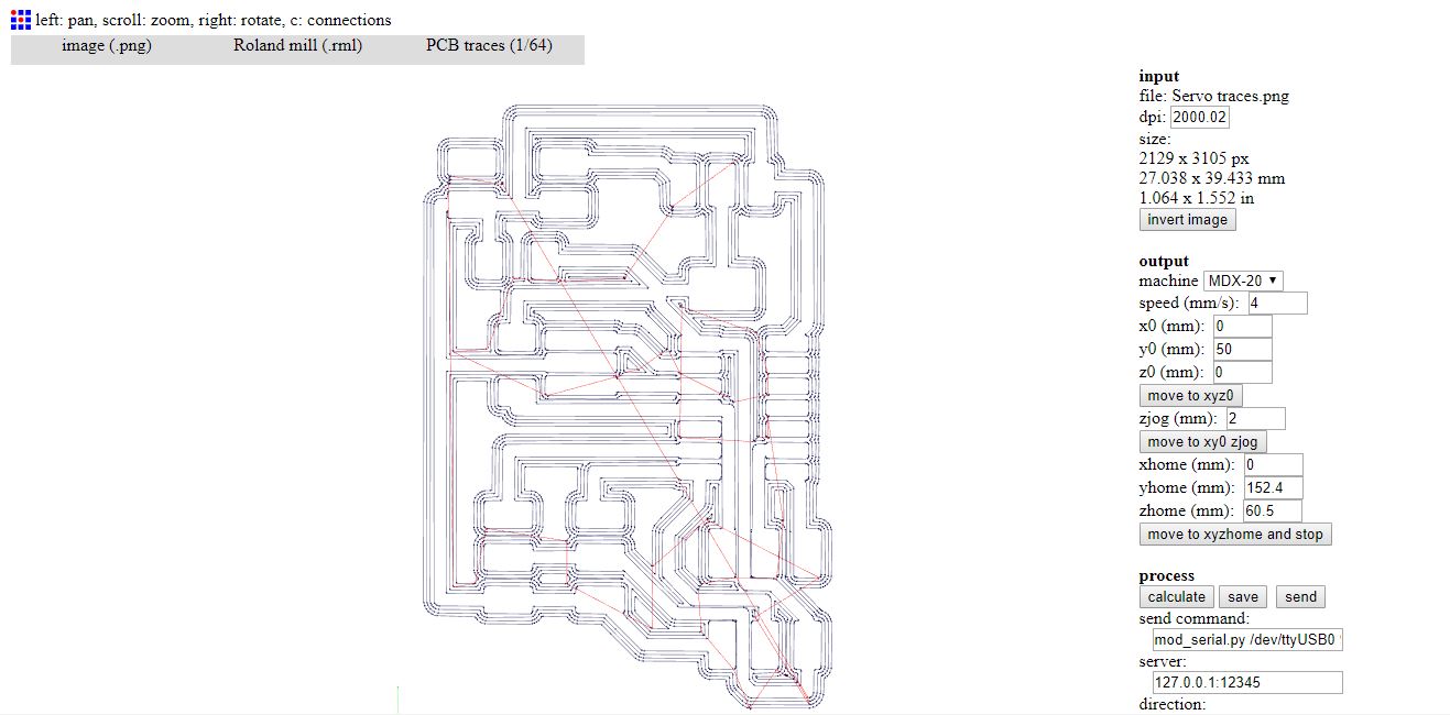 Then, I imported the board design into Fab Modules to prepare it for fabrication on the Modela.