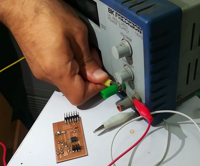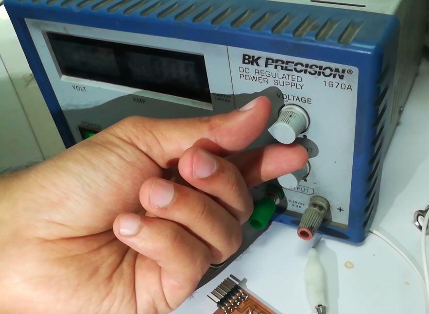 We connected 2 aligator wires to the power supply leads, one to the positive lead and the other to the ground lead of the power supply.