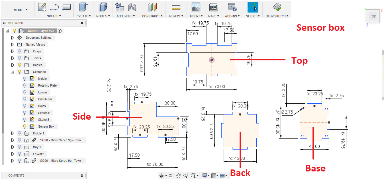 Function: It is a casing and shield for the color sensor from external light sources as much as possible to avoid causing flactuations in sensor readings.
