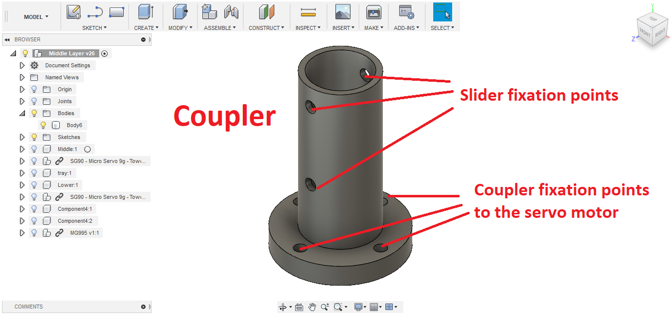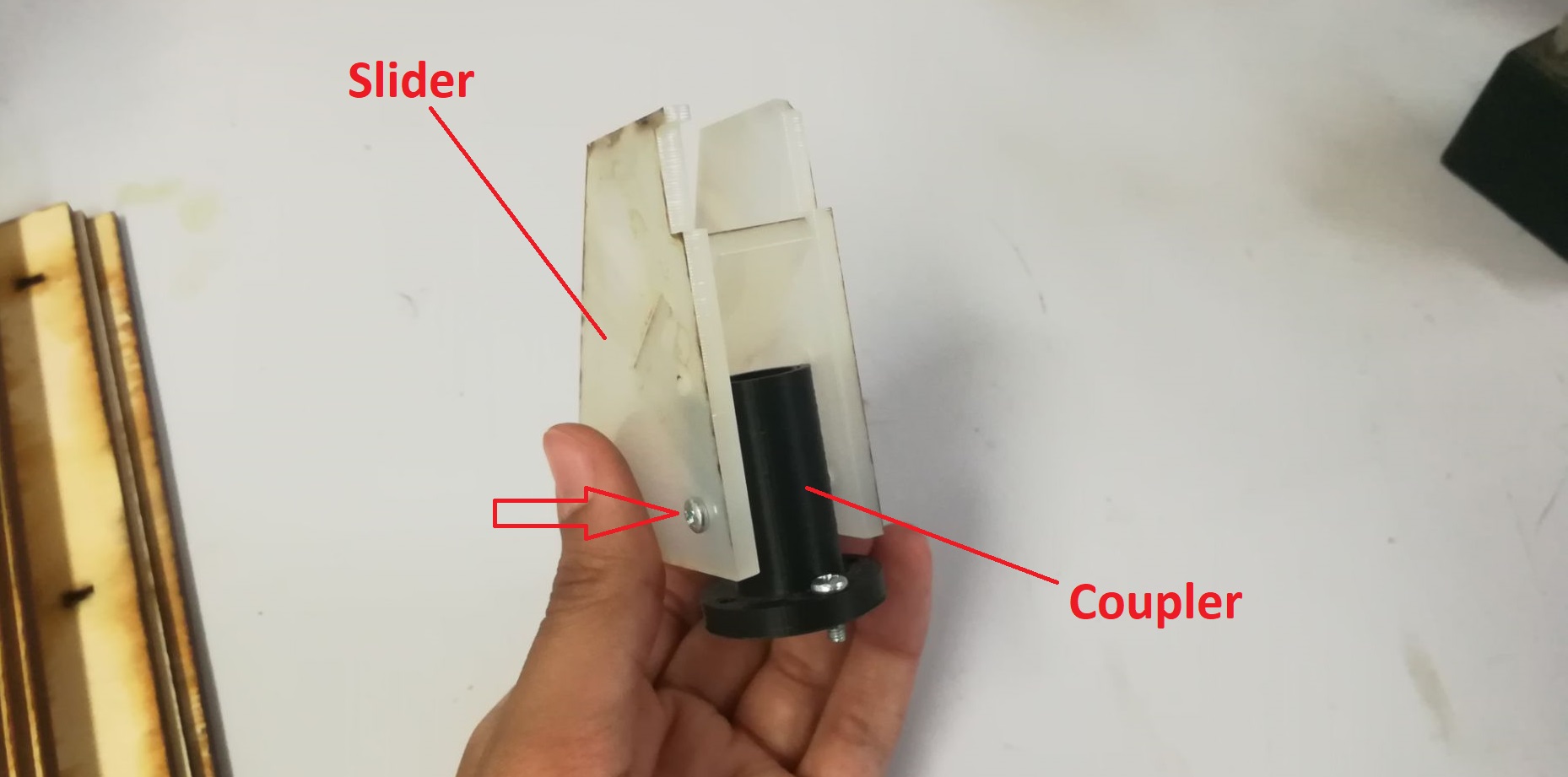Next, I assembled the coupler with Servo motor at the base of the machine with 10 mm screws: