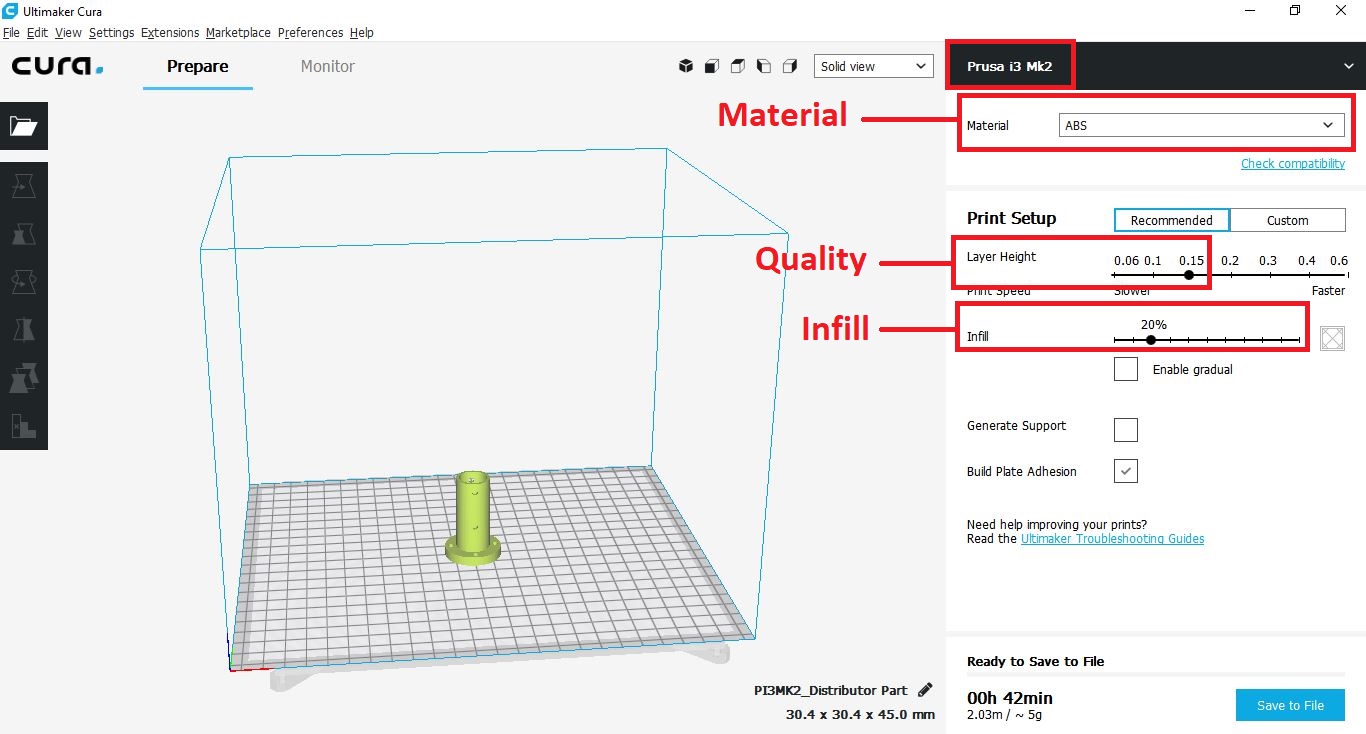 Imported the DXF file into CURA 4.0, sliced it at a layer height of 0.15 mm.
