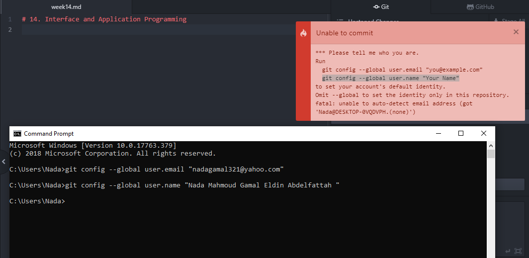So, I followed the steps, Opened the CMD and took these lines copy and paste with writing my email and my user name on the website. Shown as the pictures below.