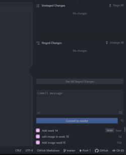 Then we press on ‘Stage All’, the files move down… if we want to move the changes up again, we press on ‘Unstage All’