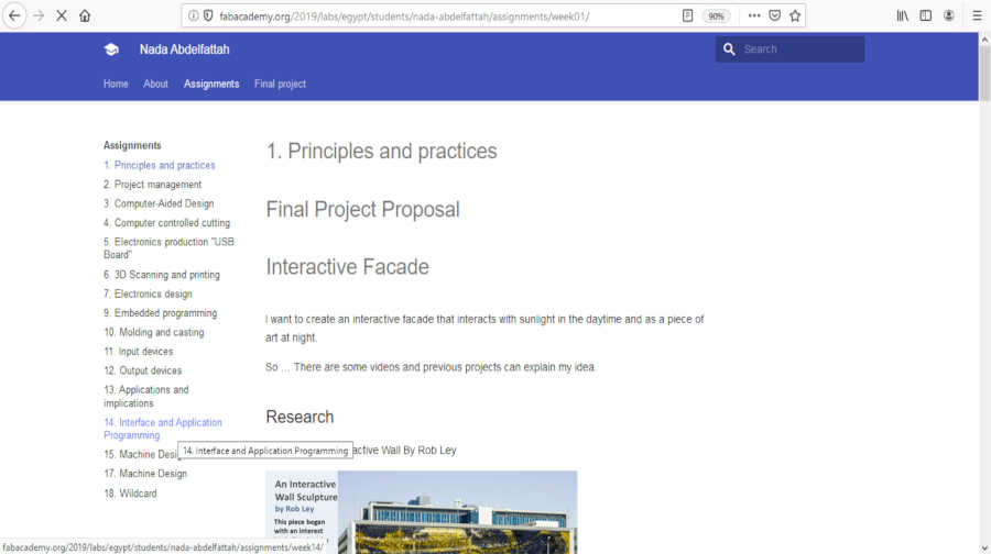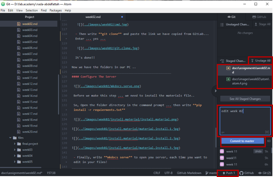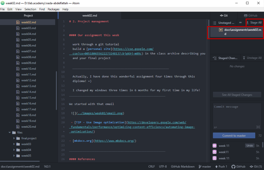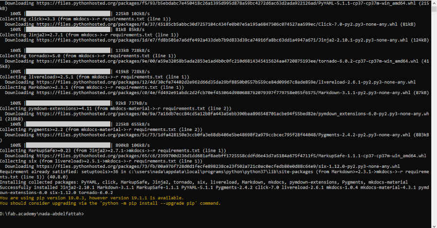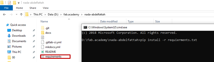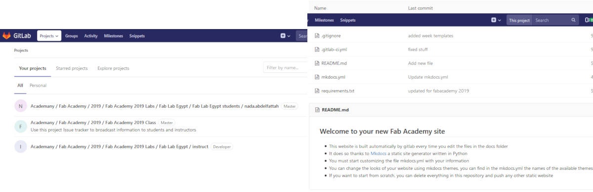 I spent a lot of time in the previous step that I made… So for this step, I asked my friend Fatma Fadel Waly for help … We joined the same program in advanced maker diploma and we made almost the same steps to make our websites … but we used Jekyll instead of Mkdocs.