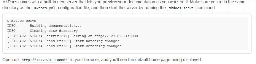 - Finally, write mkdocs serve to open you server, each time you want to edit in your files!