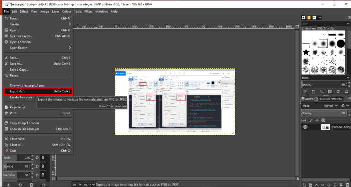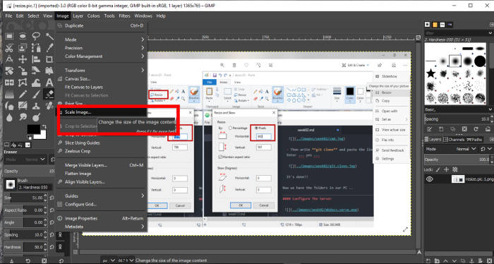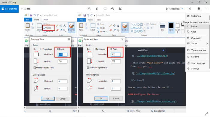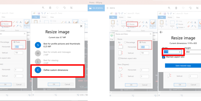 I used the previous images to try the resize with different way. I just open the image and select resize as shown
