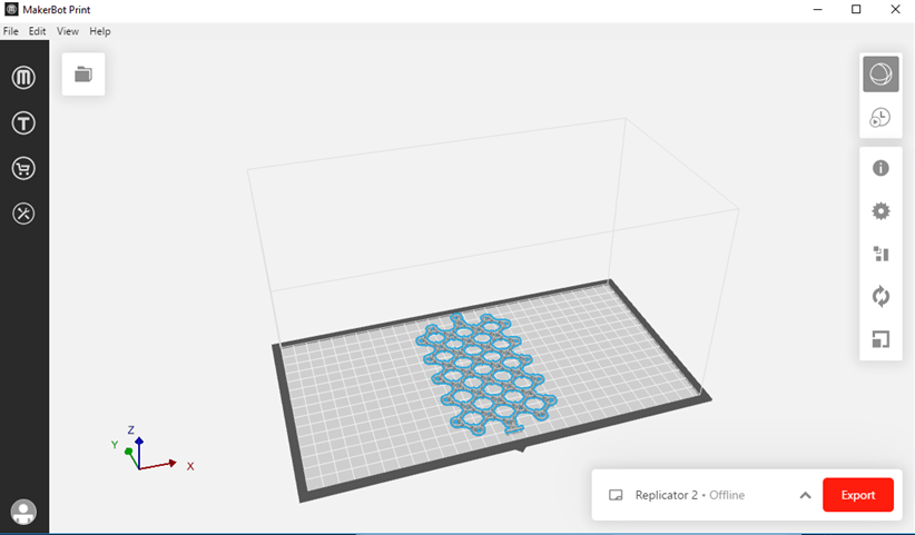 - Open the stl file in the software we will use, for my case, is MakerBot.