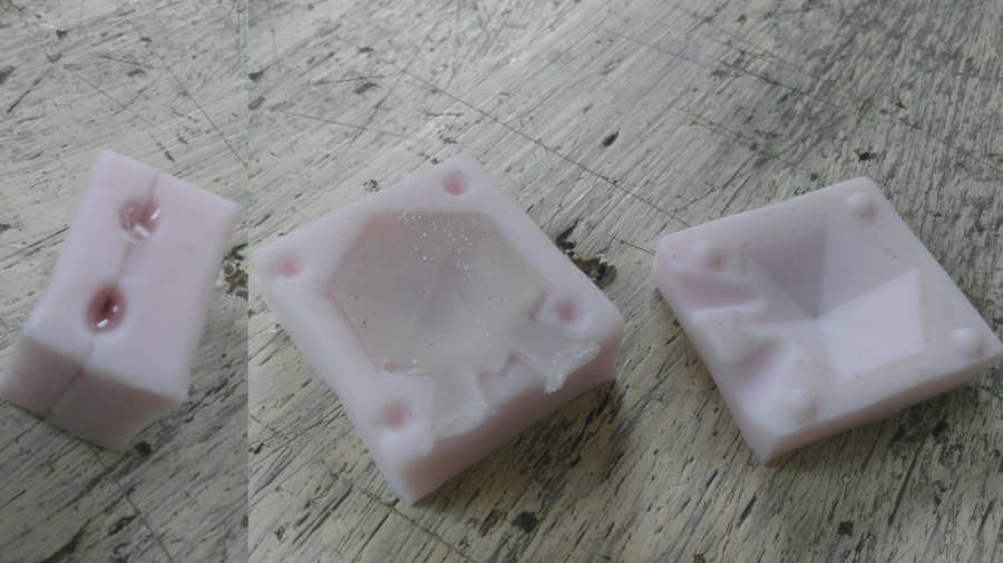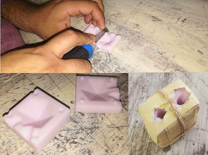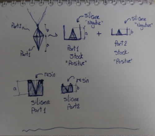 that you design the positive part ‘from wax or wood’ to be a negative part for silicon, that the resin or the casting material is poured … Then it becomes the positive part that you want!
