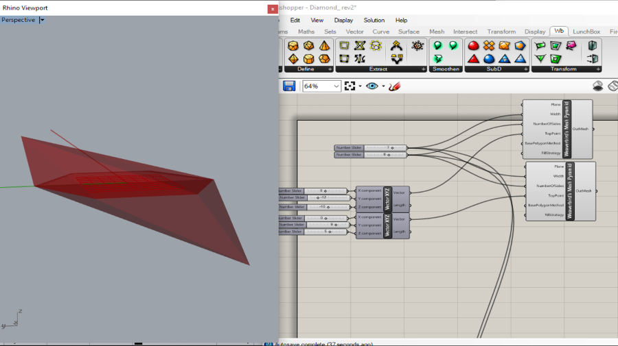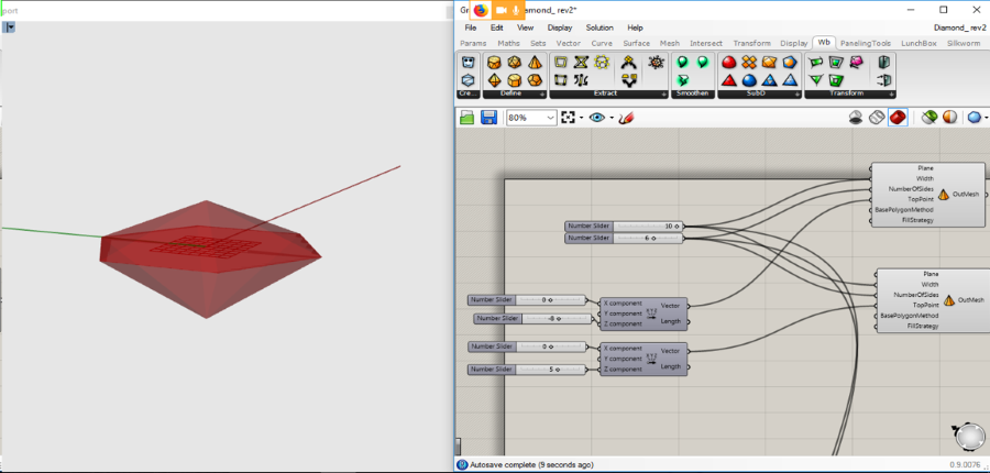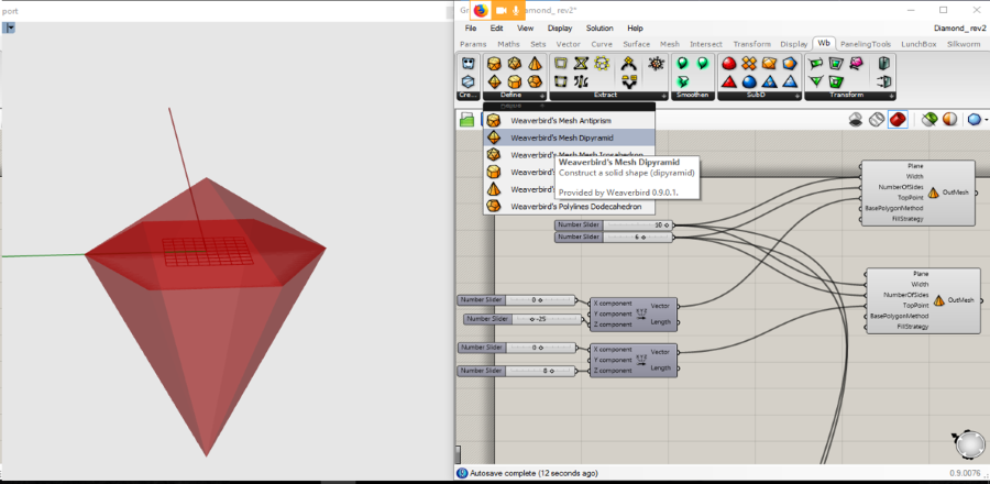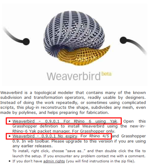 Then I started with Grasshopper. There is a smart easy plug-in in grasshopper called Weaver Bird, This plugin has an easy tools to make meshes with different patterns that you want. You just chose the version that match with your software and install it.